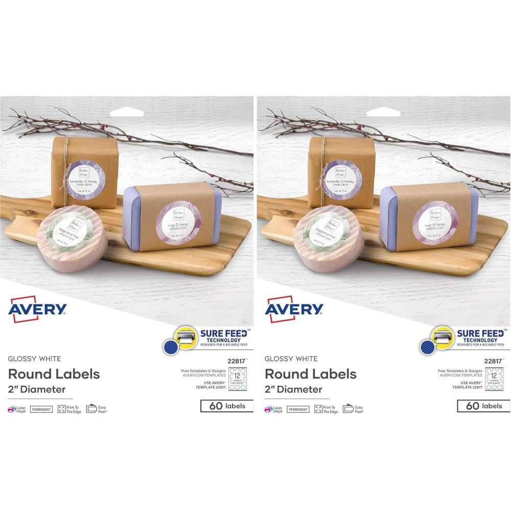Avery Printable Round Labels with Sure Feed, 2" Diameter, Glossy White, 60 Customizable Labels (22817)(60 Count (Pack of 2))