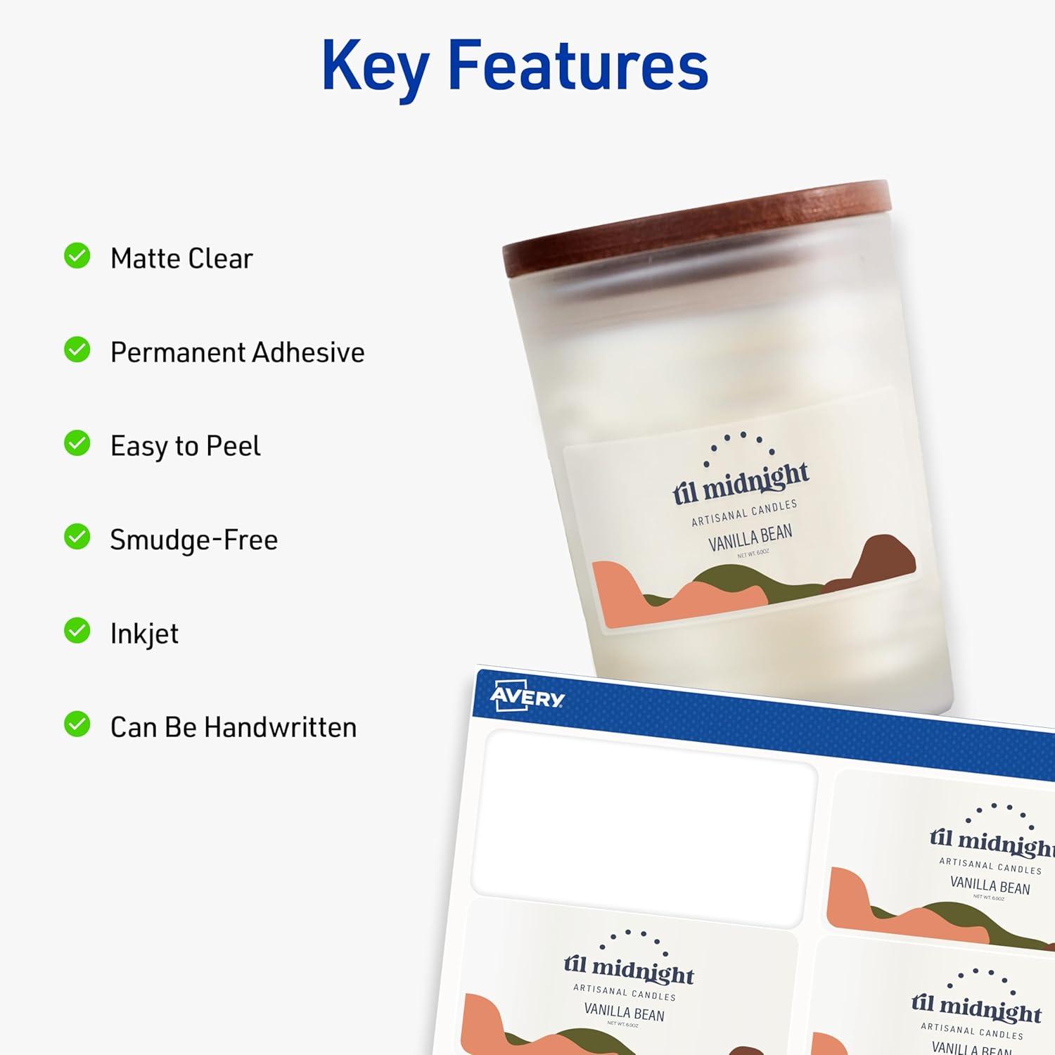 imageAvery Printable Shipping Labels with Sure Feed 2quot x 4quot Customizable Stickers Matte Clear 250 Blank Mailing Labels Great for Mailing Shipping and More 86635 Packs