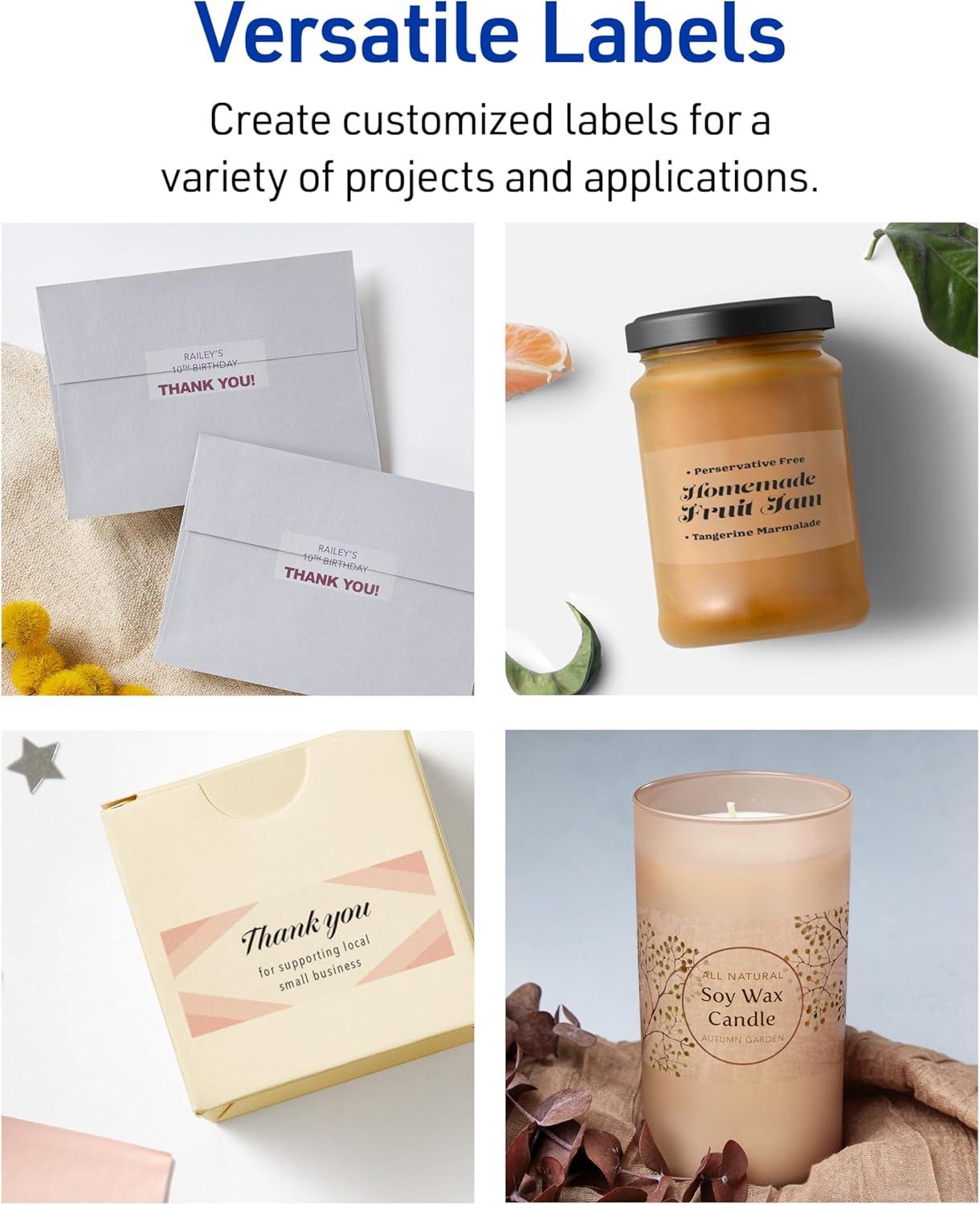 Avery Printable Shipping Labels with Sure Feed, 2″ x 4″ Customizable Stickers, Matte Clear, 250 Blank Mailing Labels, Great for Mailing, Shipping, and More (8663)(5 Packs)