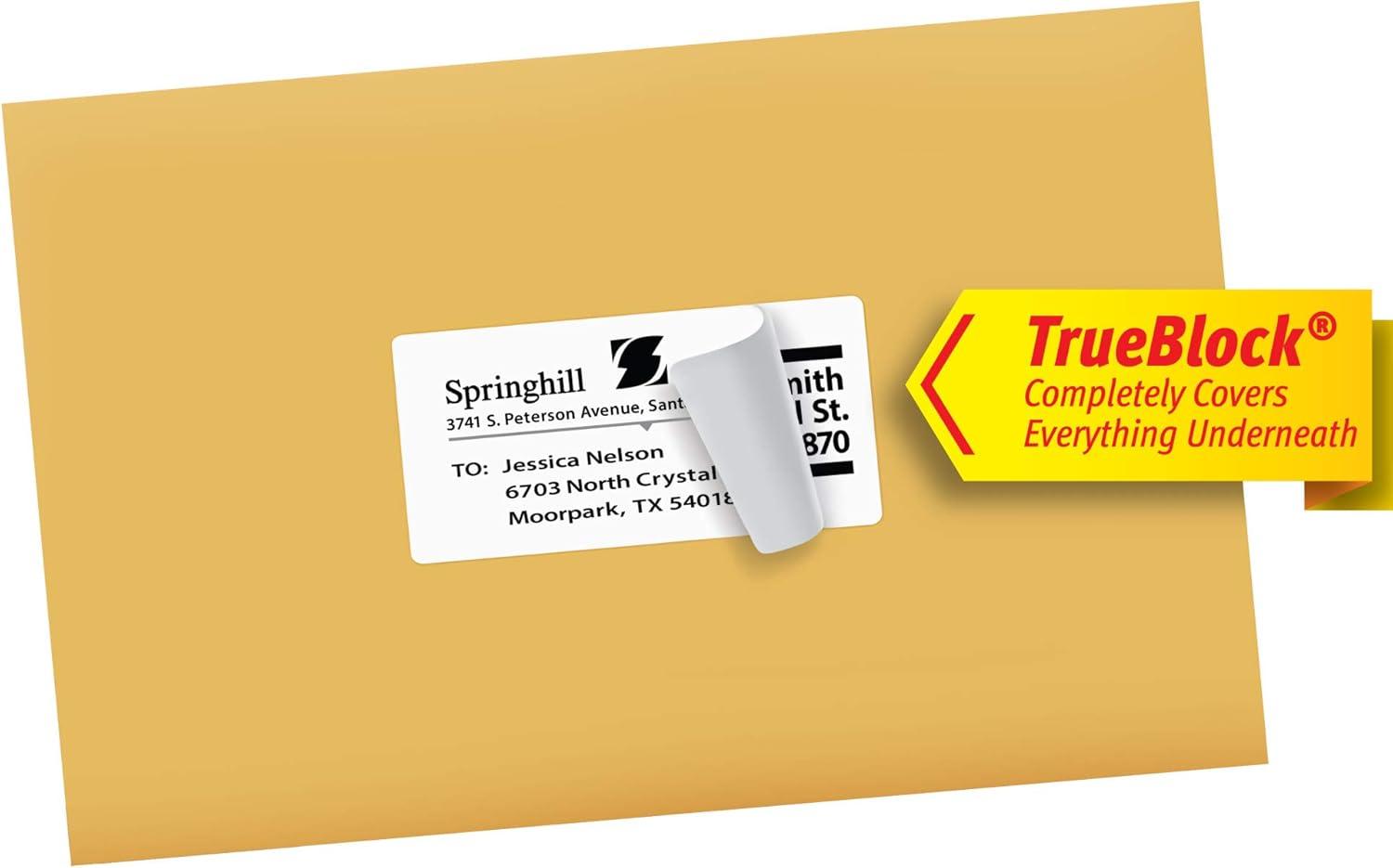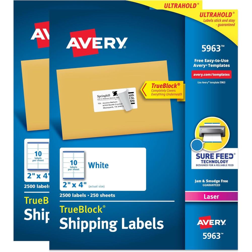 From mailing and shipping to organization and identification, simplify your tasks with this pack of 250 Avery 5263 TrueBlock Printable Shipping Labels. These 2″ x 4″ bright white labels provide superior adhesion with Ultrahold permanent adhesive guaranteed to stick and stay on most smooth surfaces, like paper, cardboard, glass, and metal. Plus, TrueBlock technology completely blocks out everything underneath the label, so you can cover markings, correct errors, safeguard sensitive information, or give new life to old boxes by concealing old labels. Optimized for laser printers, these label sheets feature Sure Feed technology that ensures a reliable feed through your printer, reducing misalignments and printer jams for crisp, hassle-free printing. You can also personalize your sticker labels by hand or use Avery Design & Print Online to print customized labels on demand. Choose from thousands of available designs and use our easy-to-use tools, like our Mail Merge feature, which can quickly import names and addresses from a spreadsheet. Ideal for bulk mailing, organization, product labels, inventory management, and more, Avery address labels are the perfect solution for any environment and application. Take the hassle out of labeling and printing and discover the difference Avery labels can make.