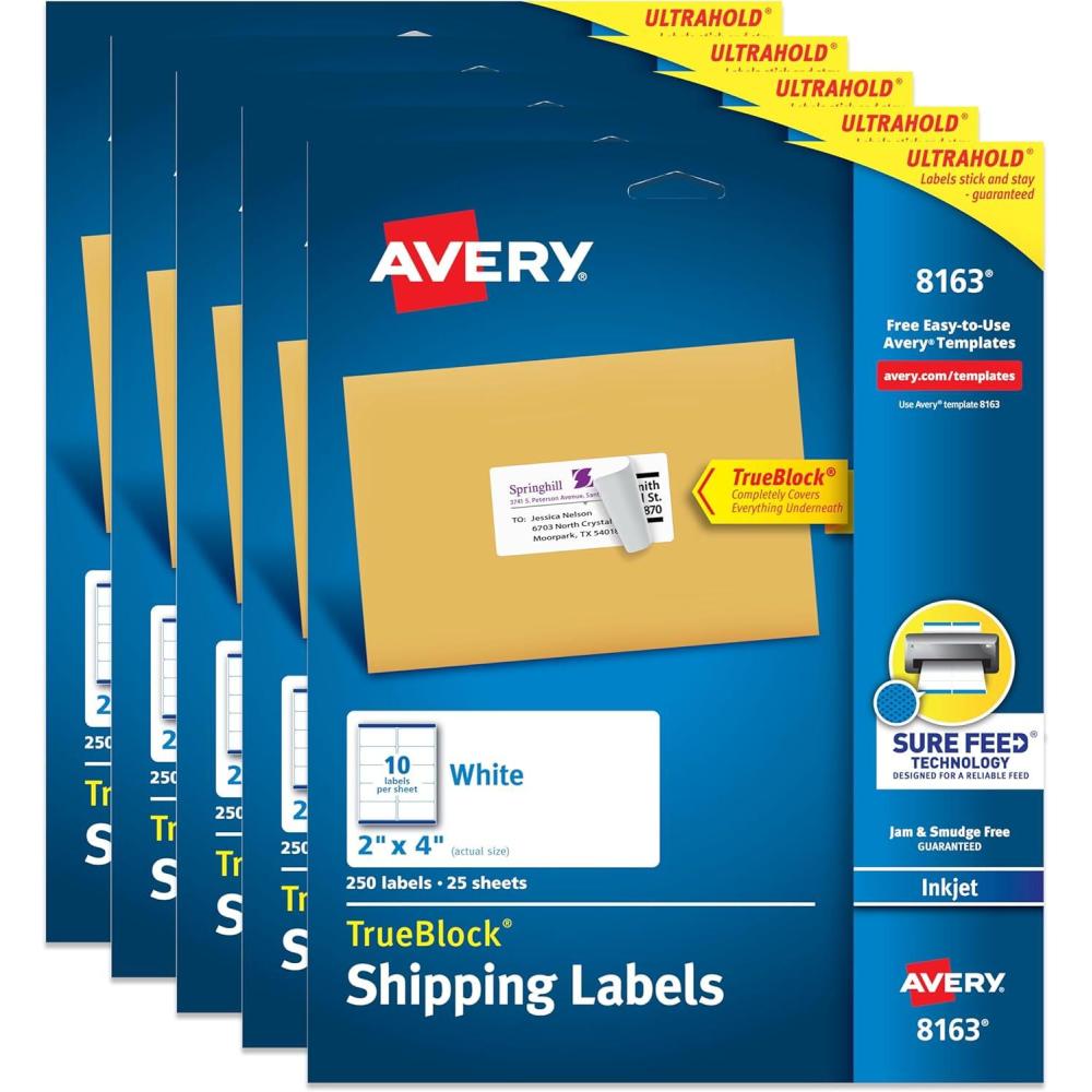 Avery Printable Shipping Labels with Sure Feed, 2" x 4" Customizable Stickers, White, 250 Blank Mailing Labels, Great for Mailing, Shipping, and More (8163)(1 250 labels)