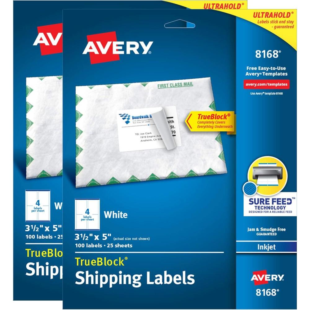 Avery Printable Shipping Labels with Sure Feed, 3.5″ x 5″, White, 100 Blank Mailing Labels (8168)(200 labels)