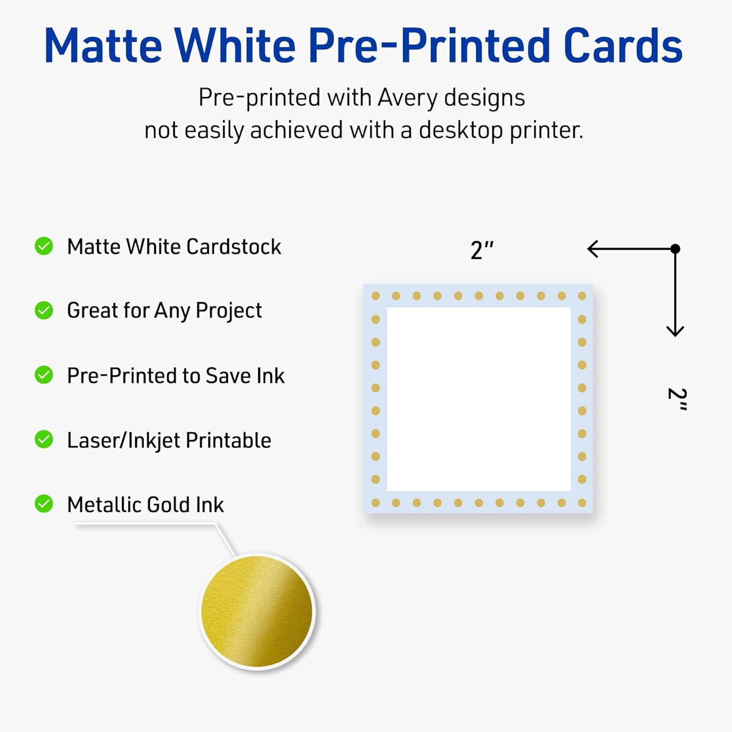 Avery Printable Square Cards, Gold Dots, Green Florals, 2" x 2", Matte White Square Cards, Laser/Inkjet, 120ct, Great for Business Promotion(Blue Border with Gold Dots)