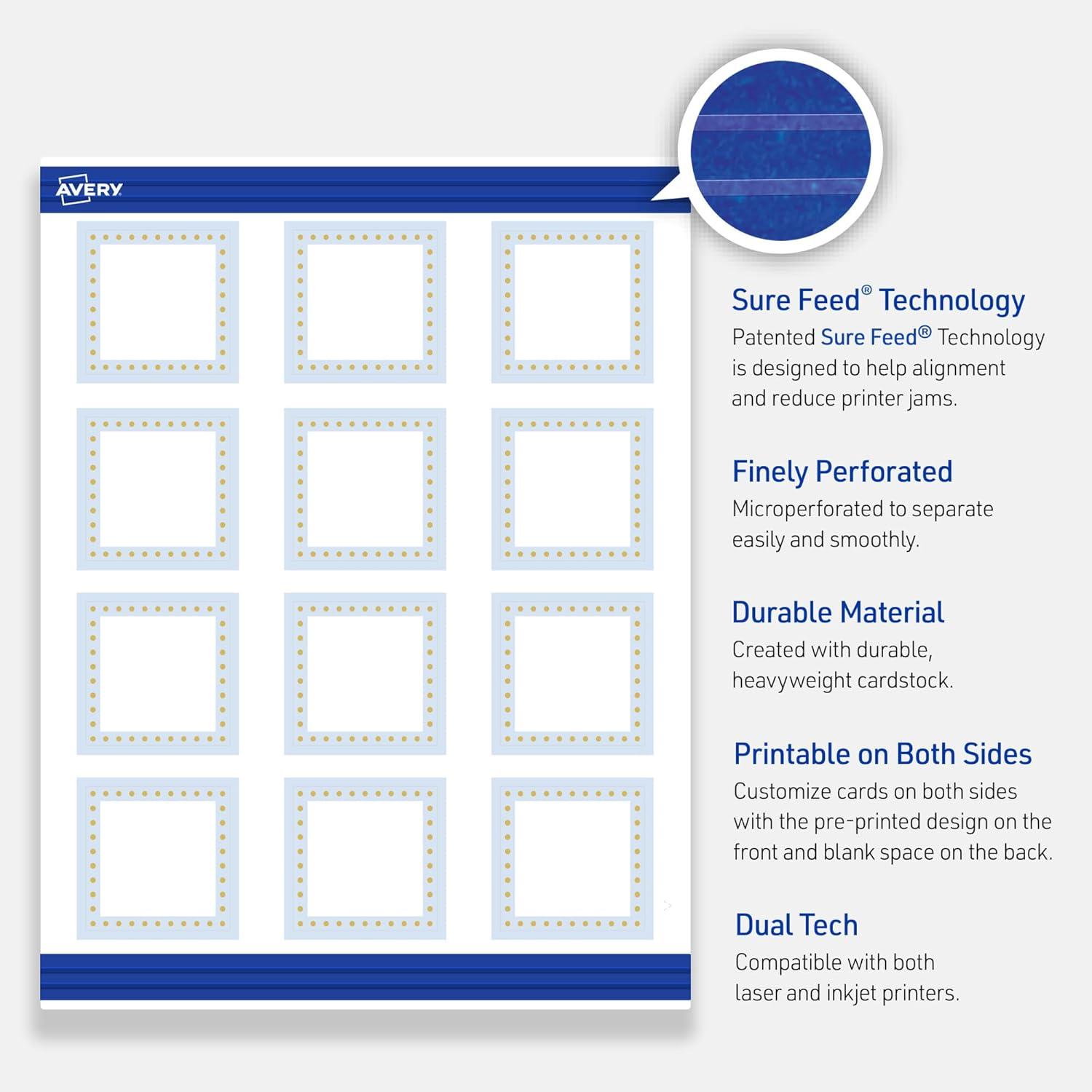 Avery Printable Square Cards, Gold Dots, Green Florals, 2″ x 2″, Matte White Square Cards, Laser/Inkjet, 120ct, Great for Business Promotion(Blue Border with Gold Dots)