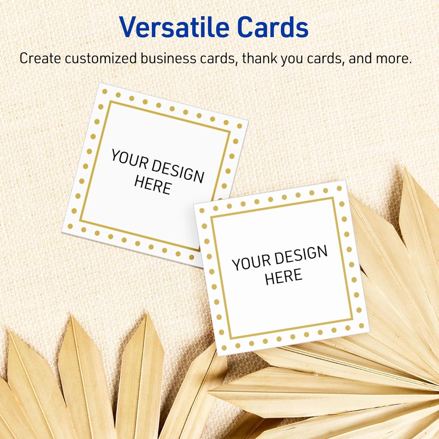Avery Printable Square Cards, Gold Dots, Green Florals, 2″ x 2″, Matte White Square Cards, Laser/Inkjet, 120ct, Great for Business Promotion(Gold Blush)
