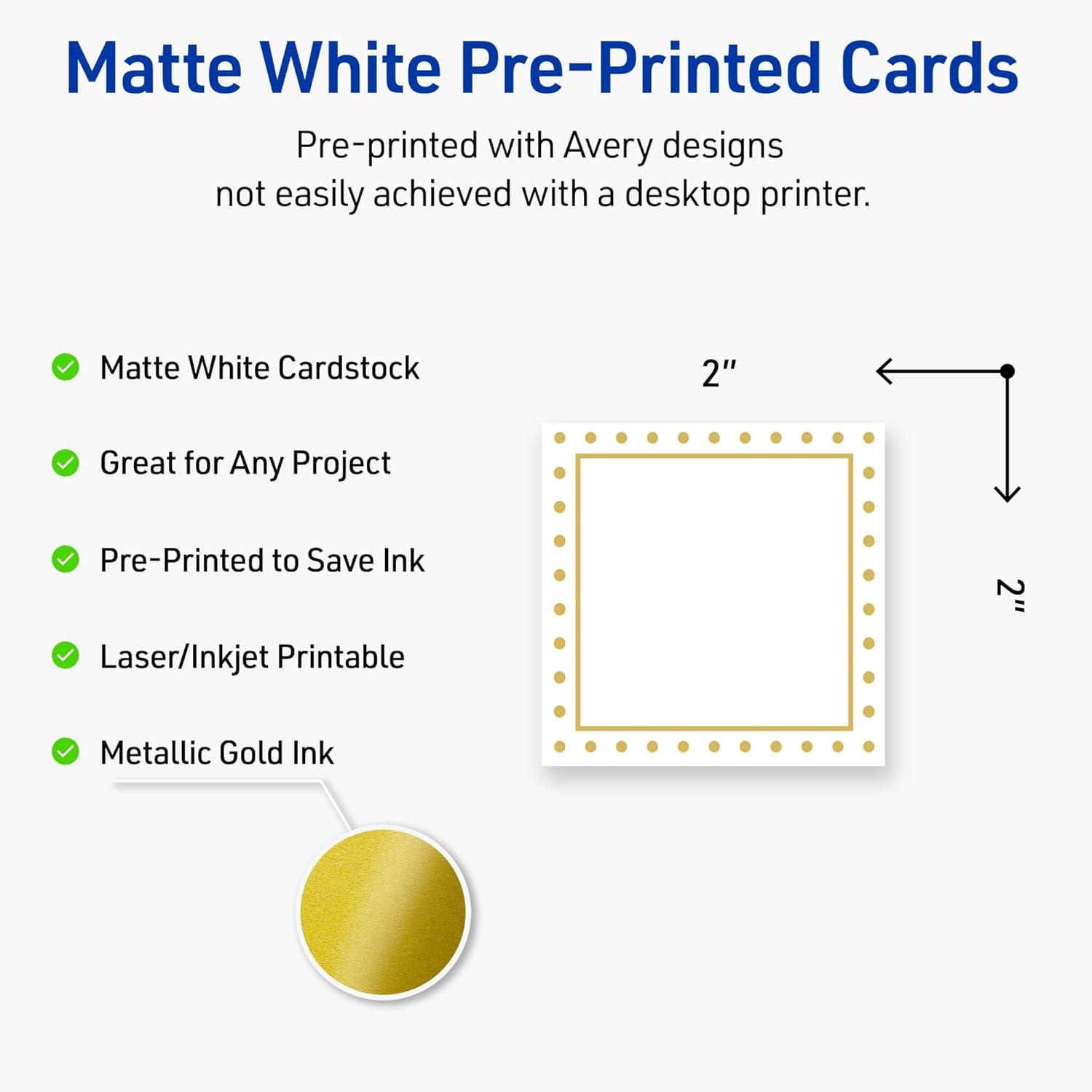 Avery Printable Square Cards, Gold Dots, Green Florals, 2" x 2", Matte White Square Cards, Laser/Inkjet, 120ct, Great for Business Promotion(Gold Border with Gold Dots)