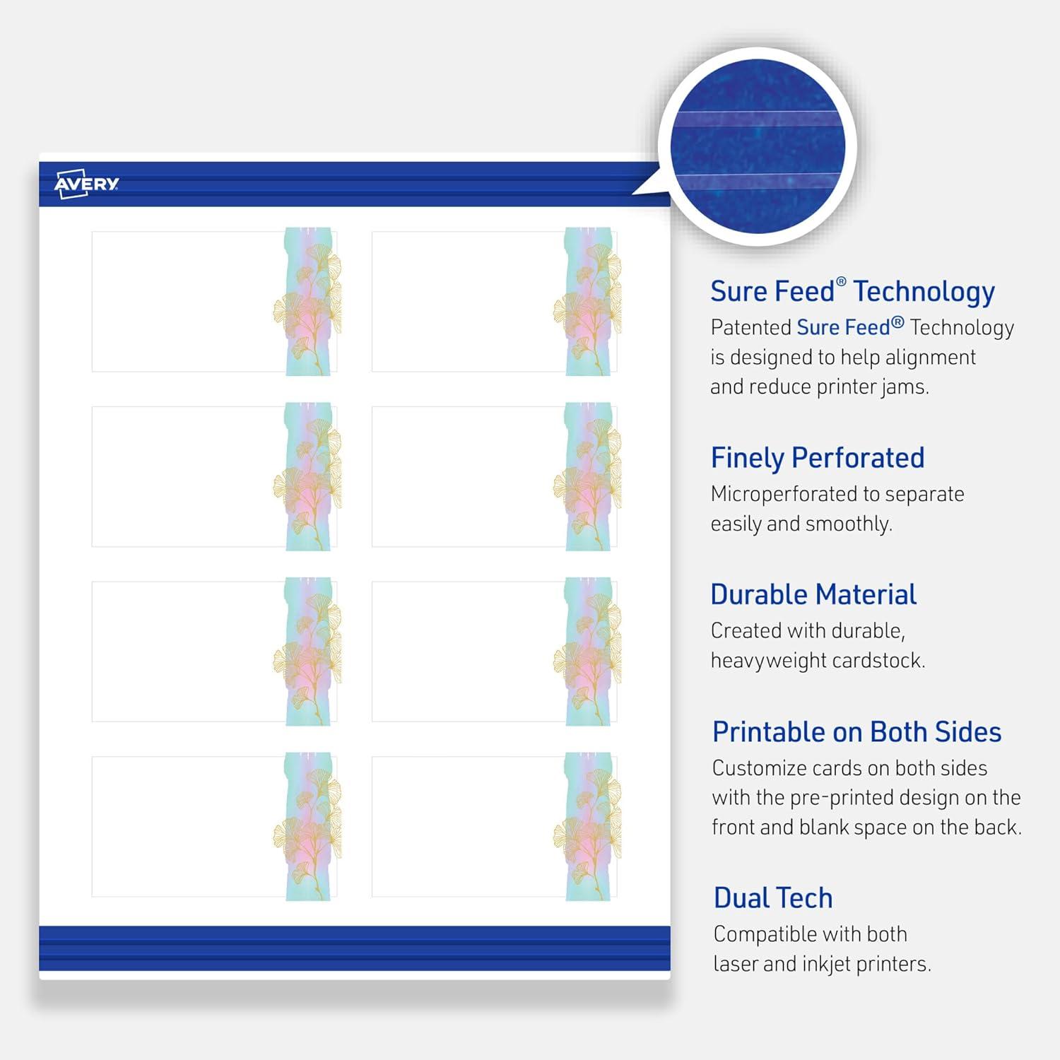 Avery cards with patented Sure Feed technology provide a more reliable feed through your printer, reducing misalignments and jams