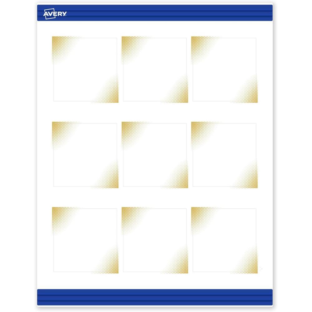 imageAvery Printable Square Cards Gold Edge Dots 25quot x 25quot Matte White Square Cards LaserInkjet 90ct Great for Business PromotionGold Border with Gold Dots