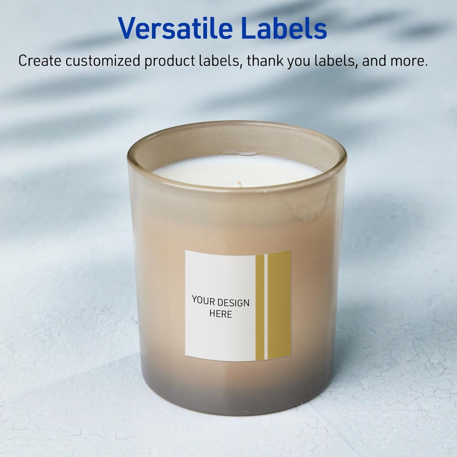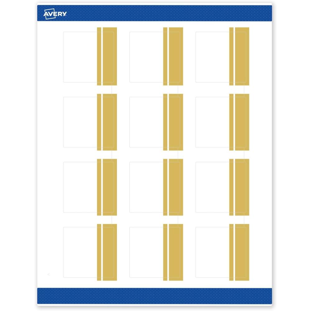 Avery Printable Square Labels, Gold-Dipped Edge, 2″ x 2″, Matte White Square Labels, Permanent, Laser/Inkjet, 120ct, Great for Product Merchandising(Double Dipped Gold Edge)