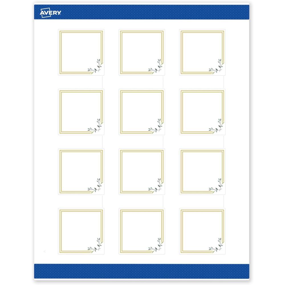 imageAvery Printable Square Labels GoldDipped Edge 2quot x 2quot Matte White Square Labels Permanent LaserInkjet 120ct Great for Product MerchandisingDouble Gold Border With Florals