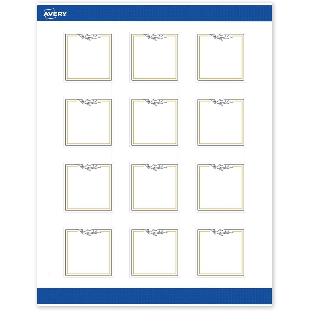 imageAvery Printable Square Labels GoldDipped Edge 2quot x 2quot Matte White Square Labels Permanent LaserInkjet 120ct Great for Product MerchandisingDouble Gold Border With Florals