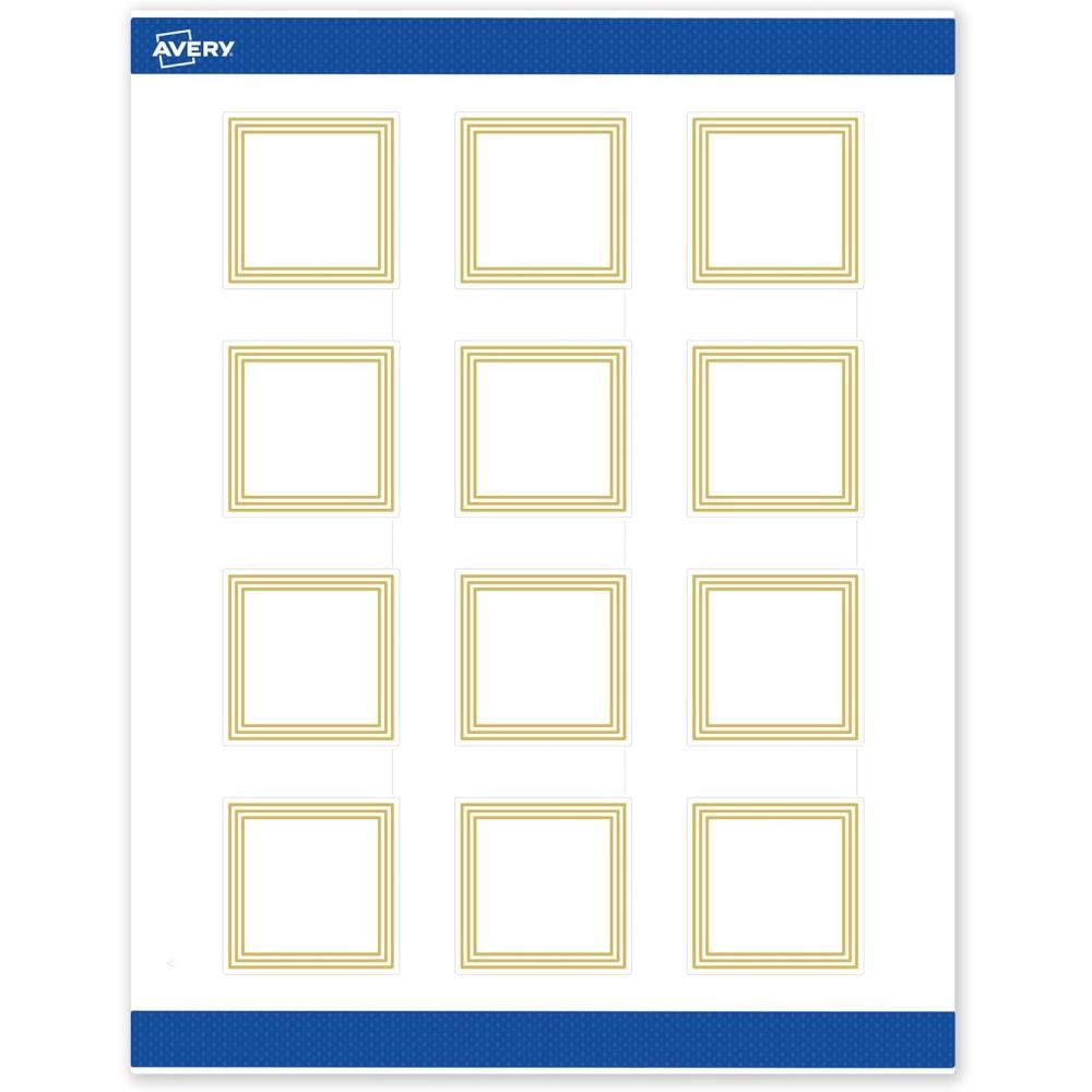Avery Printable Square Labels, Gold-Dipped Edge, 2″ x 2″, Matte White Square Labels, Permanent, Laser/Inkjet, 120ct, Great for Product Merchandising(Multi-lined Gold Border)