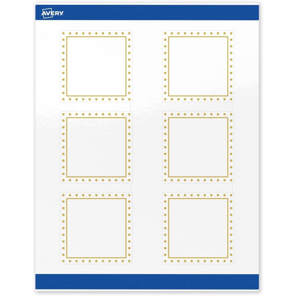 imageAvery Printable Square Labels Gold Dots Green Florals 3quot x 3quot Glossy White Square Labels Permanent LaserInkjet 60ct Great for Product MerchandisingGold Border With Gold Dots