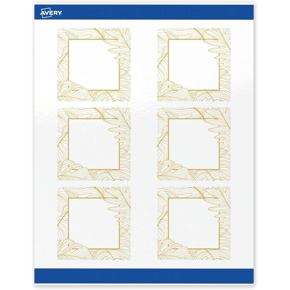 Avery Printable Square Labels, Gold Dots, Green Florals, 3″ x 3″, Glossy White Square Labels, Permanent, Laser/Inkjet, 60ct, Great for Product Merchandising(Gold Lace Trim)