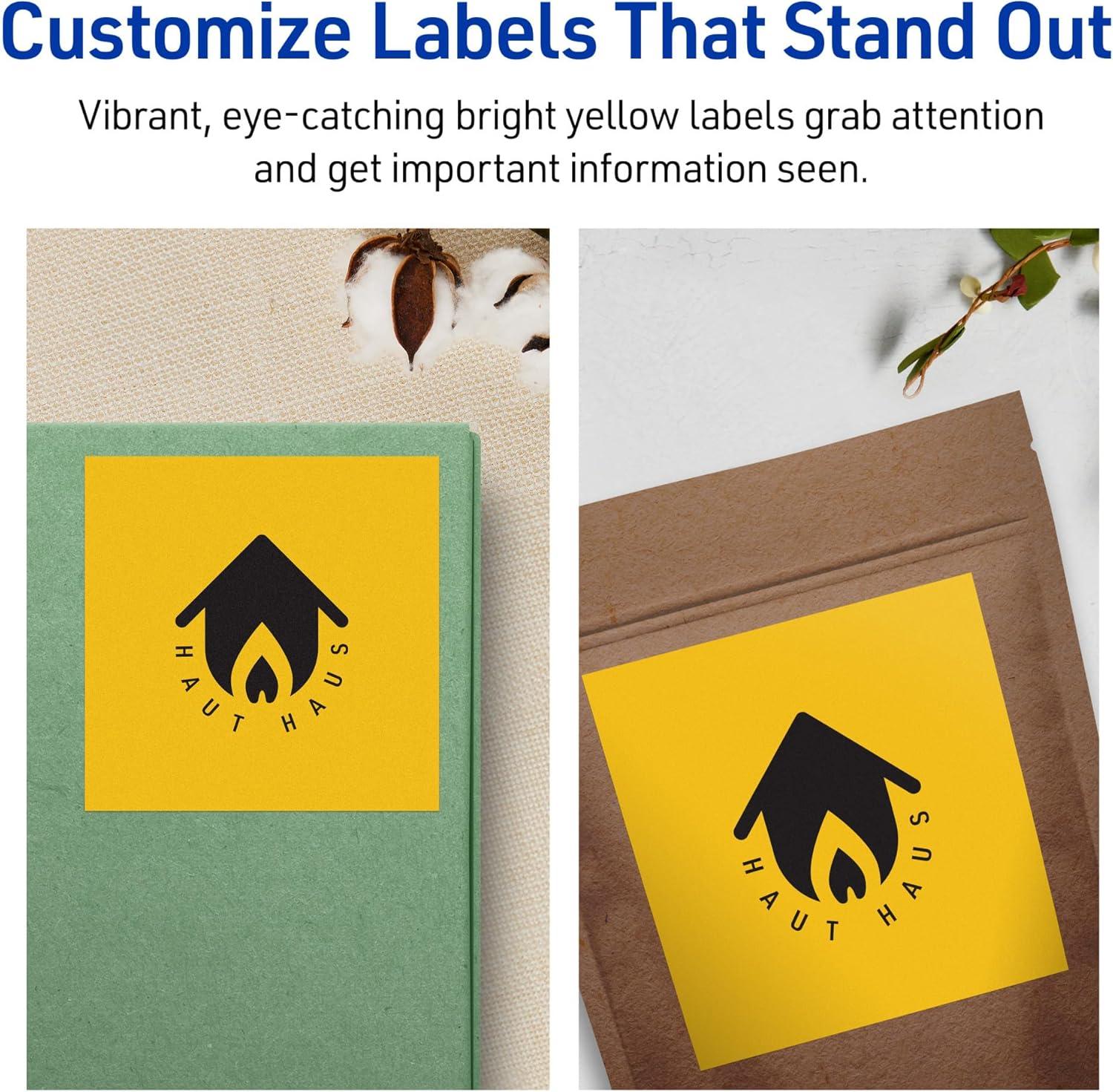 Avery Printable Square Labels, Sure Feed Technology, 4″ x 4″, Bright Yellow Labels, Laser/Inkjet Printable, 40 Total, Great for Packaging and Ingredients(320 labels)