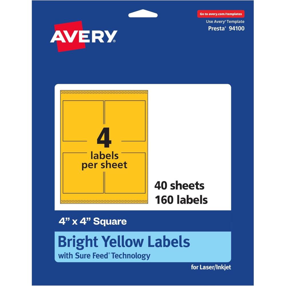 imageAvery Printable Square Labels Sure Feed Technology 4quot x 4quot Bright Yellow Labels LaserInkjet Printable 40 Total Great for Packaging and Ingredients160 labels