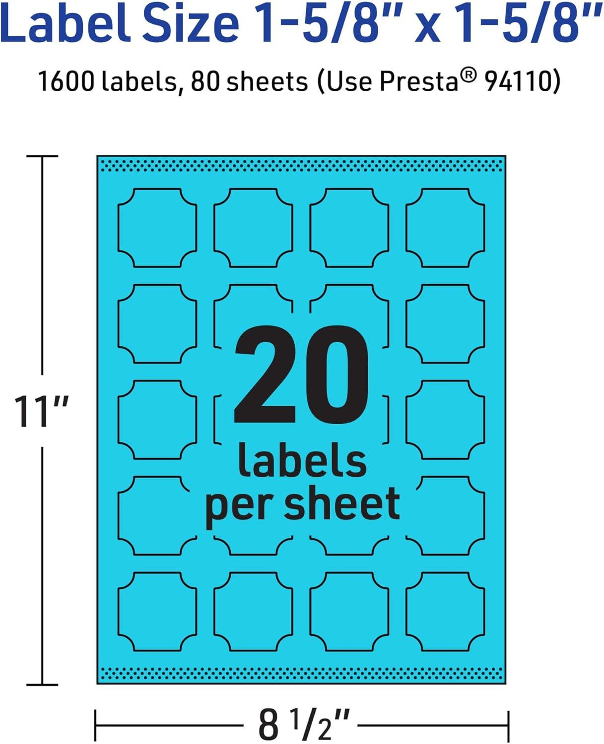 Avery Printable Square Scalloped Labels, Sure Feed Technology, 1-5/8" x 1-5/8", Bright Blue Labels, Print-to-The-Edge, Laser/Inkjet Printable, 200 Total, Great for Cosmetics and Jars(1 600 labels)