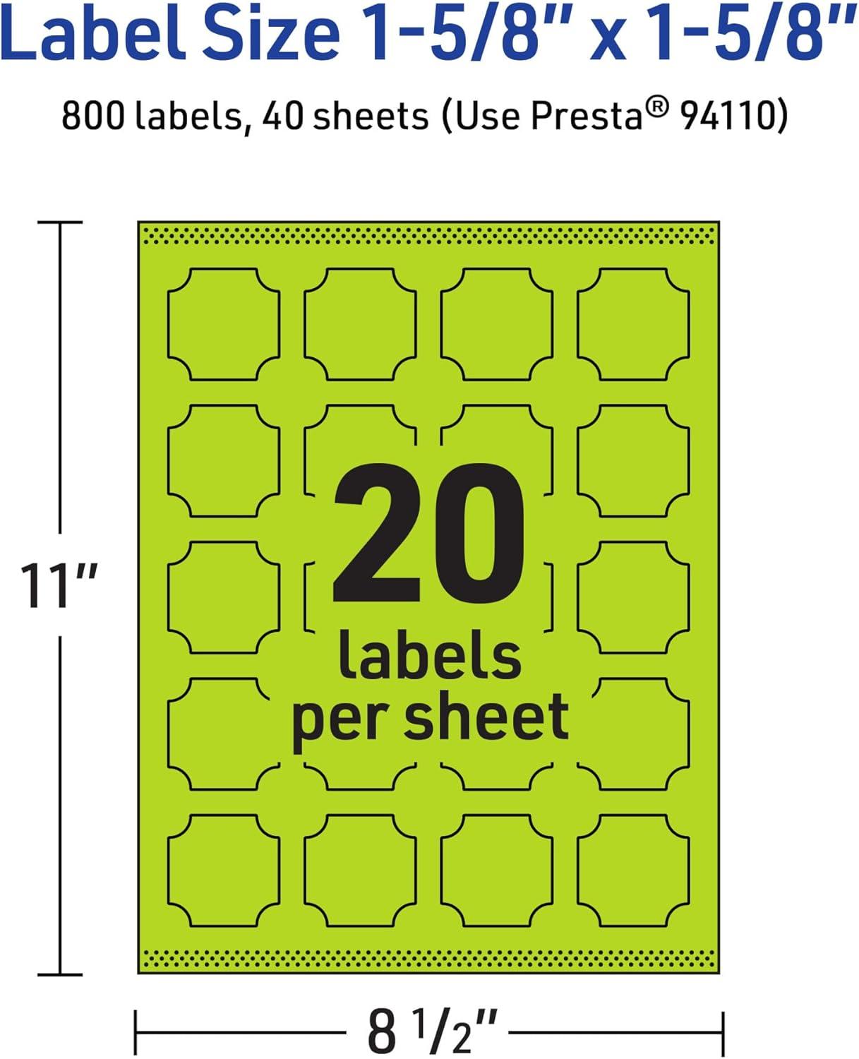 Avery Printable Square Scalloped Labels, Sure Feed Technology, 1-5/8" x 1-5/8", Bright Green Labels, Print-to-The-Edge, Laser/Inkjet Printable, 200 Total, Great for Cosmetics and Jars(800 labels)