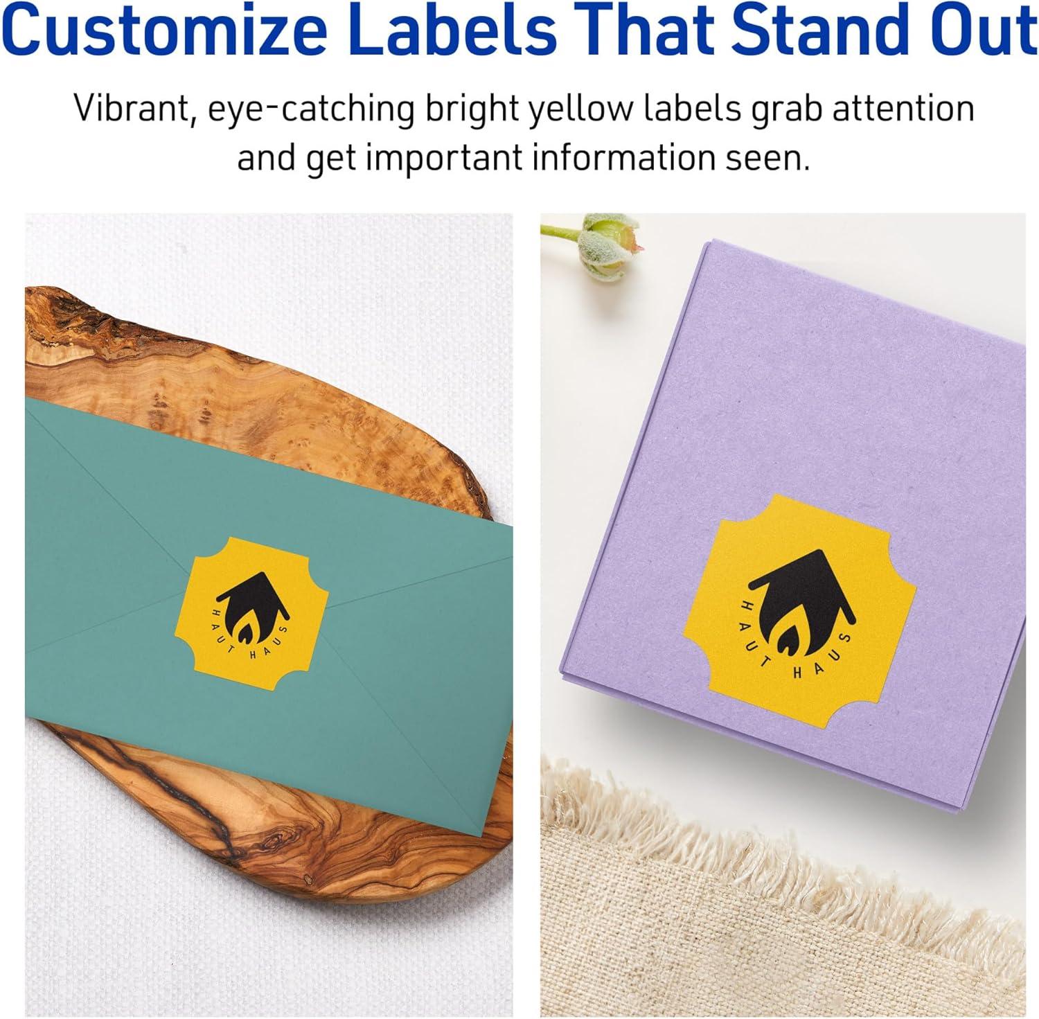 Avery Printable Square Scalloped Labels, Sure Feed Technology, 1-5/8" x 1-5/8", Bright Yellow Labels, Print-to-The-Edge, Laser/Inkjet Printable, 200 Total, Great for Cosmetics and Jars(400 labels)
