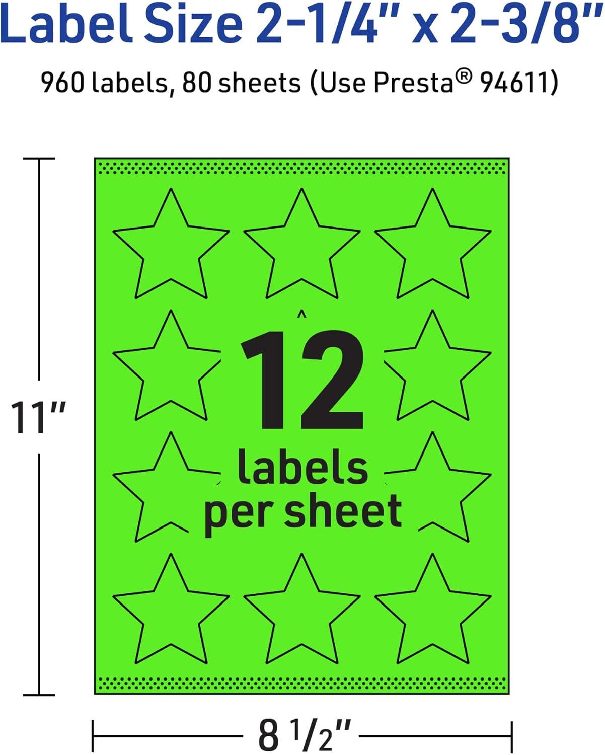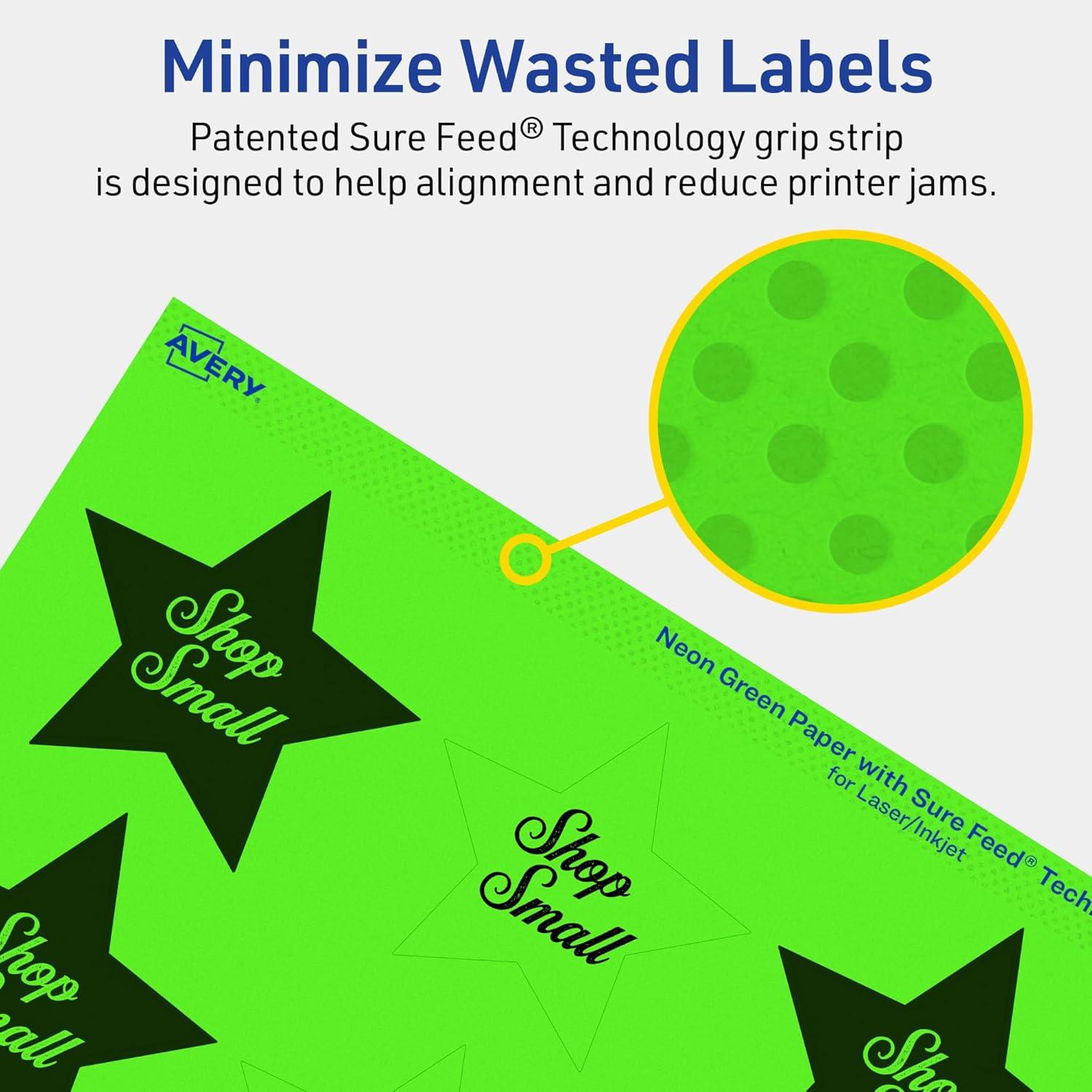 Avery Printable Star Labels, Sure Feed Technology, 2-1/4″ x 2-3/8″, Neon Green Labels, Print-to-The-Edge, Laser/Inkjet, 120 Total, Great for Reward Stickers and Mailing Seals(960 labels)