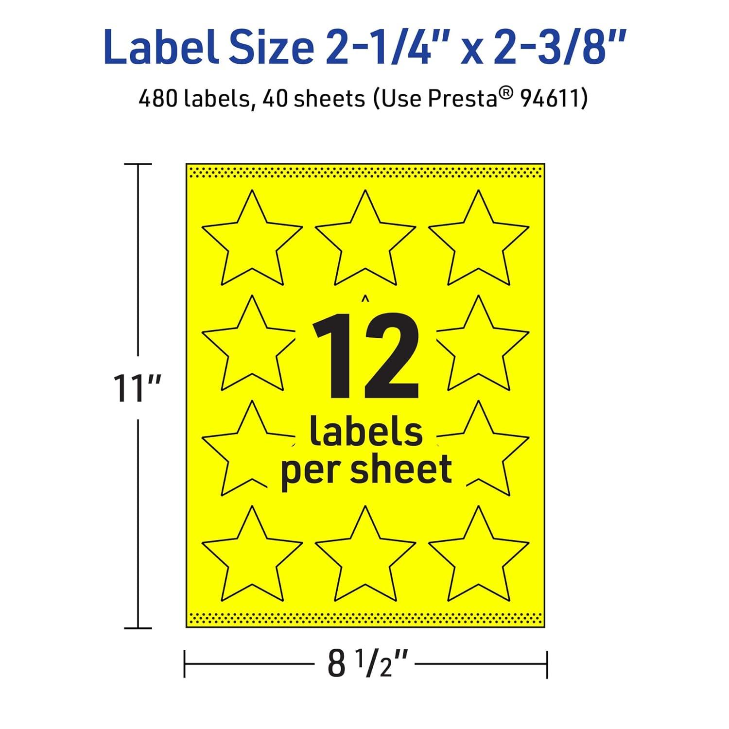imageAvery Printable Star Labels Sure Feed Technology 214quot x 238quot Neon Yellow Labels PrinttoTheEdge LaserInkjet 120 Total Great for Reward Stickers and Mailing Seals480 labels