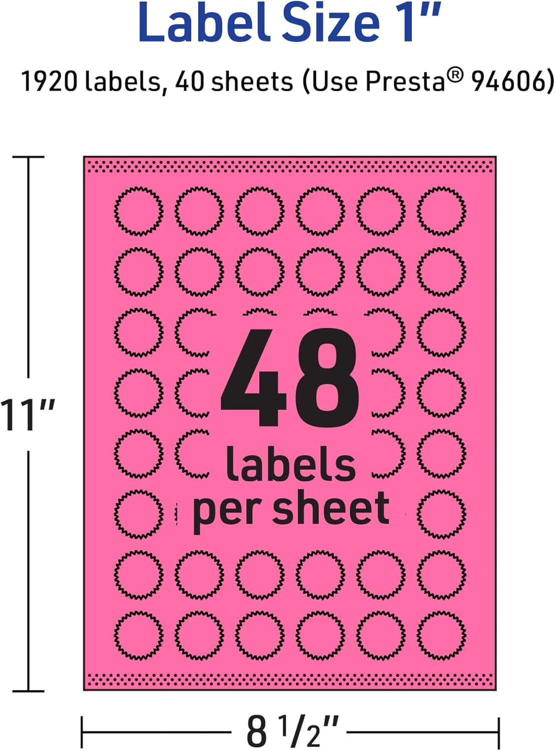 Avery Printable Starburst Labels, Sure Feed Technology, 1″, Bright Pink Labels, Print-to-The-Edge, Laser/Inkjet, 480 Total, Great for Mailing Seals and Planner Stickers(1 920 labels)