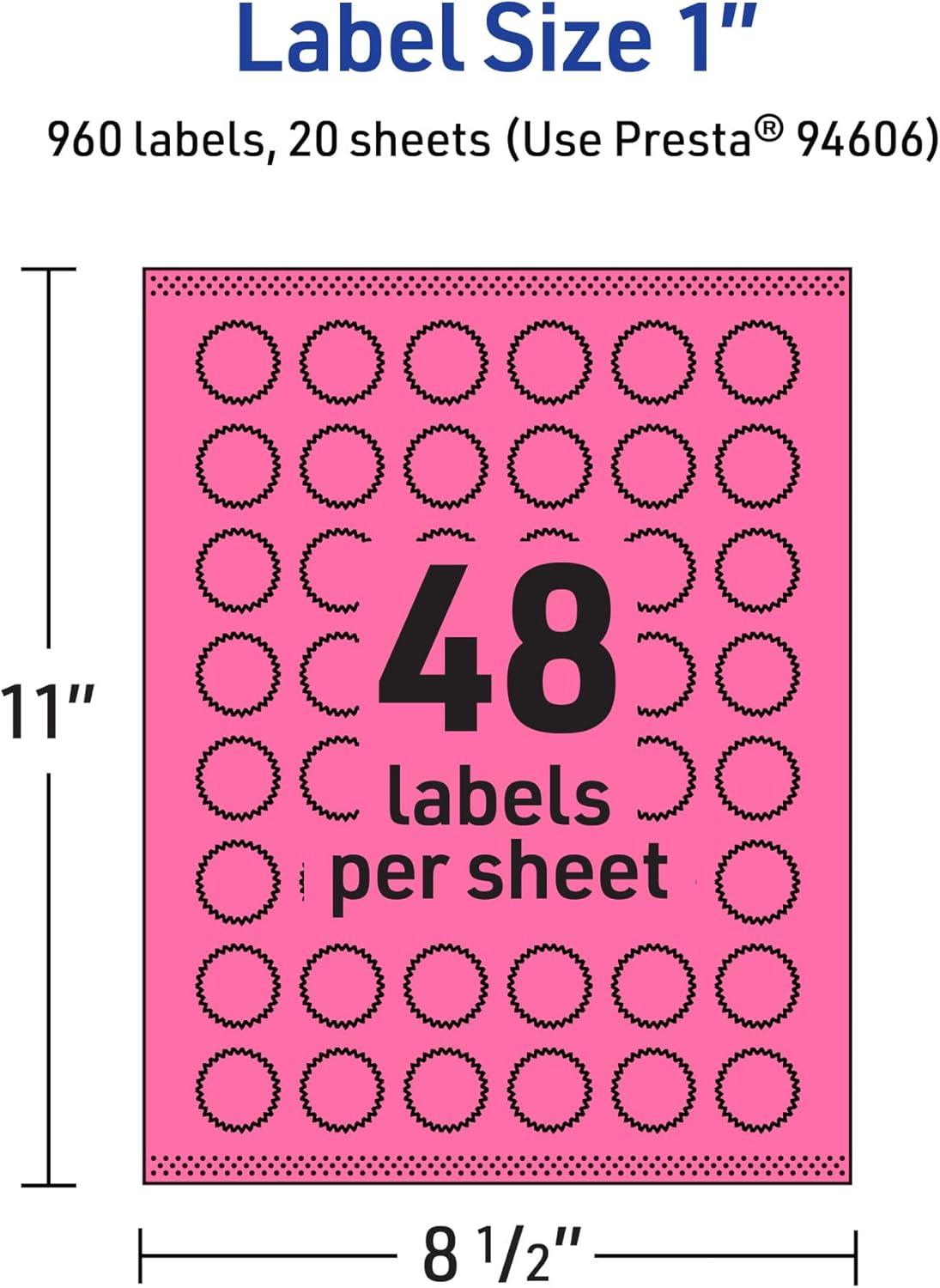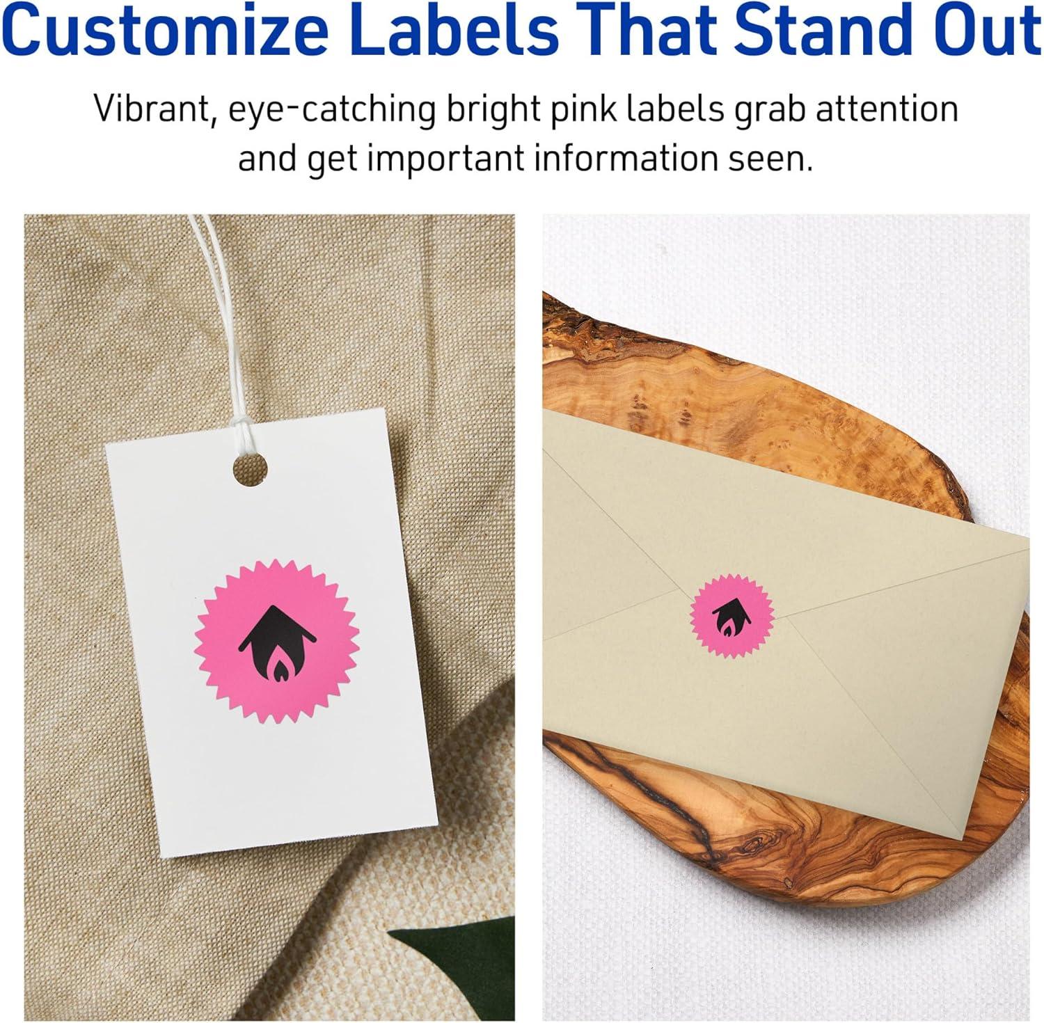 Avery Printable Starburst Labels, Sure Feed Technology, 1″, Bright Pink Labels, Print-to-The-Edge, Laser/Inkjet, 480 Total, Great for Mailing Seals and Planner Stickers(960 labels)