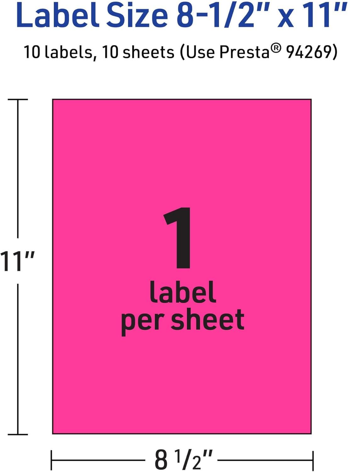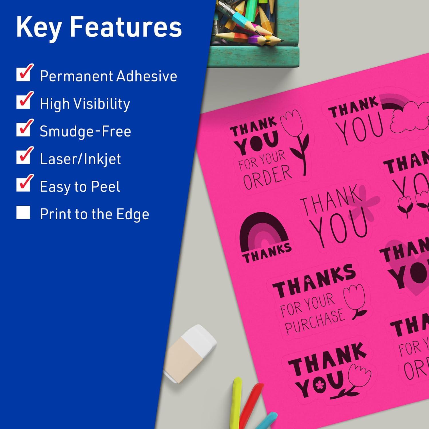 Avery Printable Sticker Paper, 8.5″ x 11″, Matte White, Repositionable Adhesive, Laser/Inkjet Compatible, 5 Full-Size Label Sheets, Great for Product Branding, Cute Stickers, Crafts, and More (53202)(Neon Magenta)