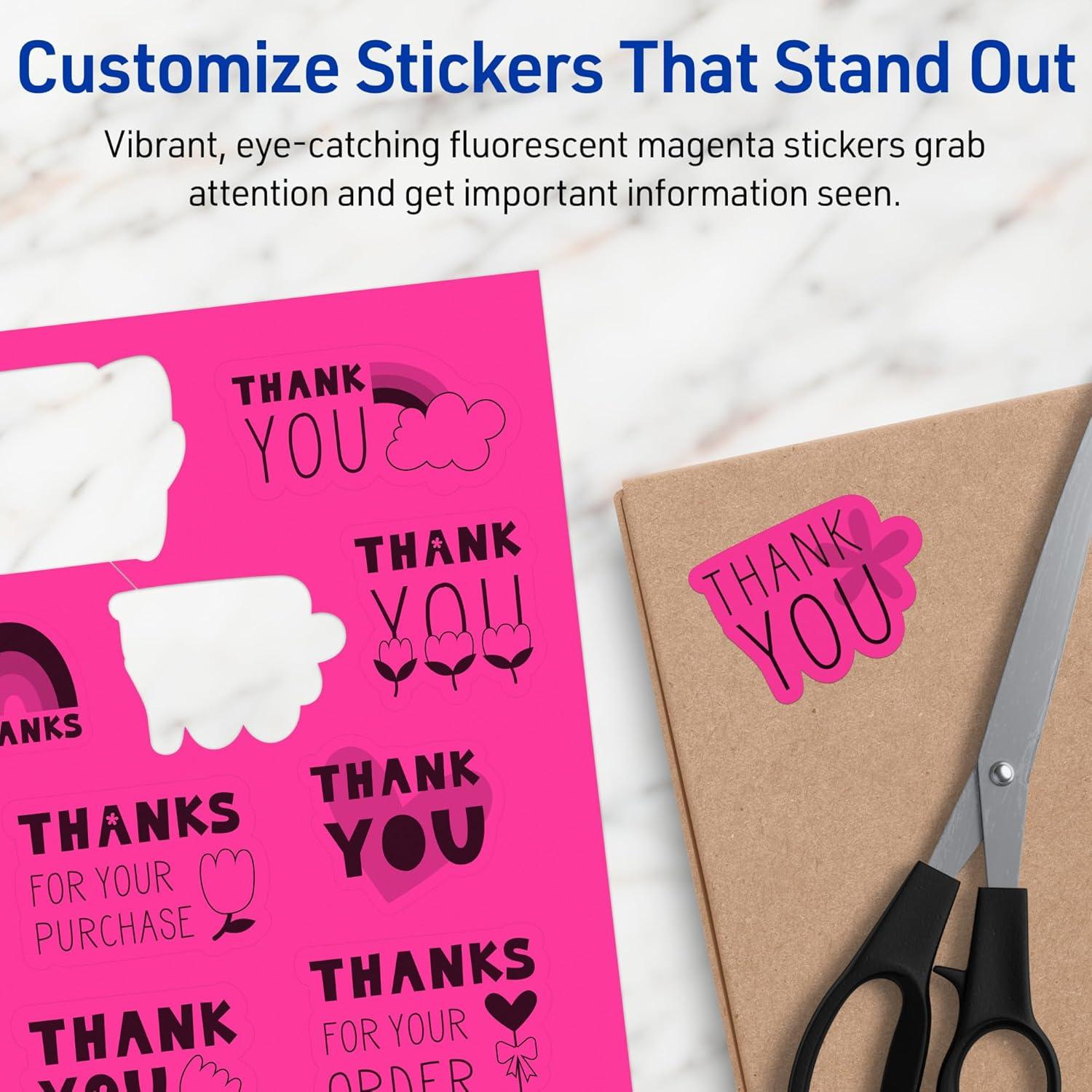 Avery Printable Sticker Paper, 8.5" x 11", Matte White, Repositionable Adhesive, Laser/Inkjet Compatible, 5 Full-Size Label Sheets, Great for Product Branding, Cute Stickers, Crafts, and More (53202)(Neon Magenta)