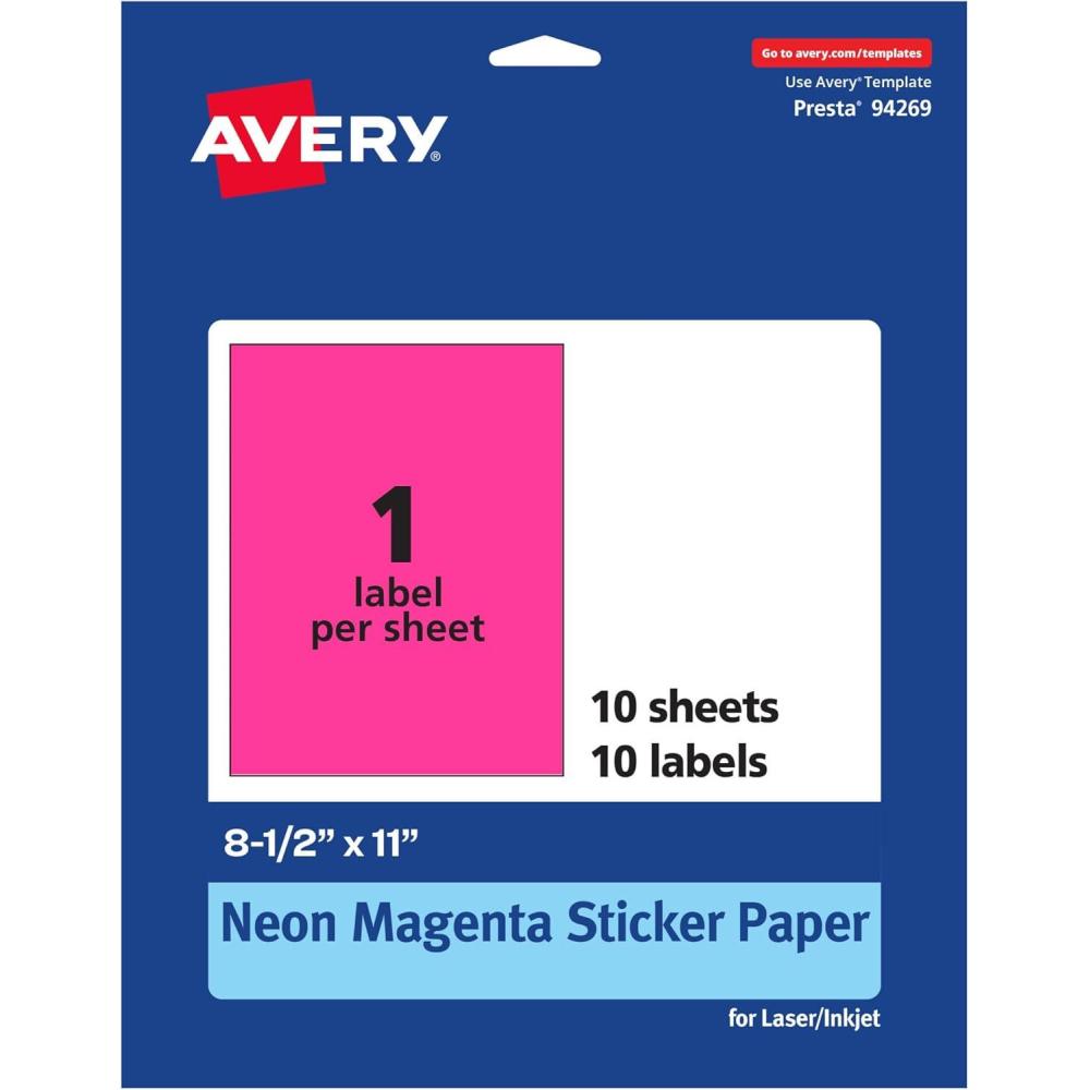 imageAvery Printable Sticker Paper 85quot x 11quot Matte White Repositionable Adhesive LaserInkjet Compatible 5 FullSize Label Sheets Great for Product Branding Cute Stickers Crafts and More 53202Neon Magenta