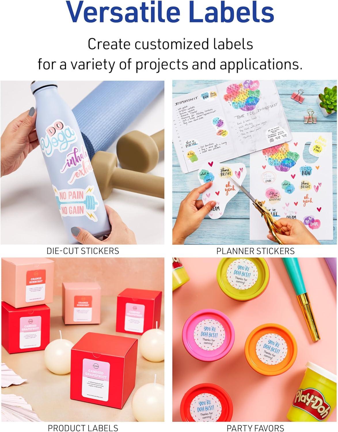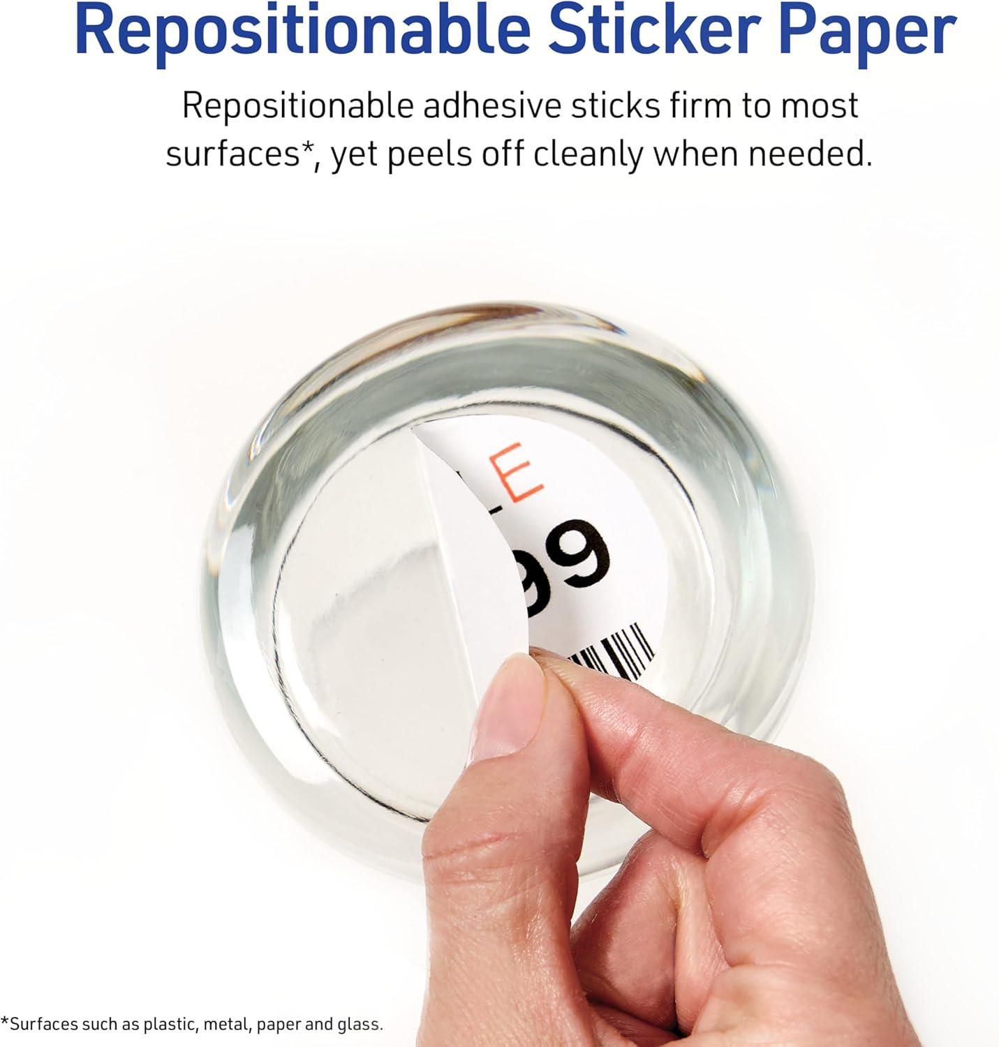 Avery Printable Sticker Paper, 8.5″ x 11″, Matte White, Repositionable Adhesive, Laser/Inkjet Compatible, 90 Full-Size Label Sheets, Great for Product Labels, Cute Stickers, and More (6-Pack of 3383)