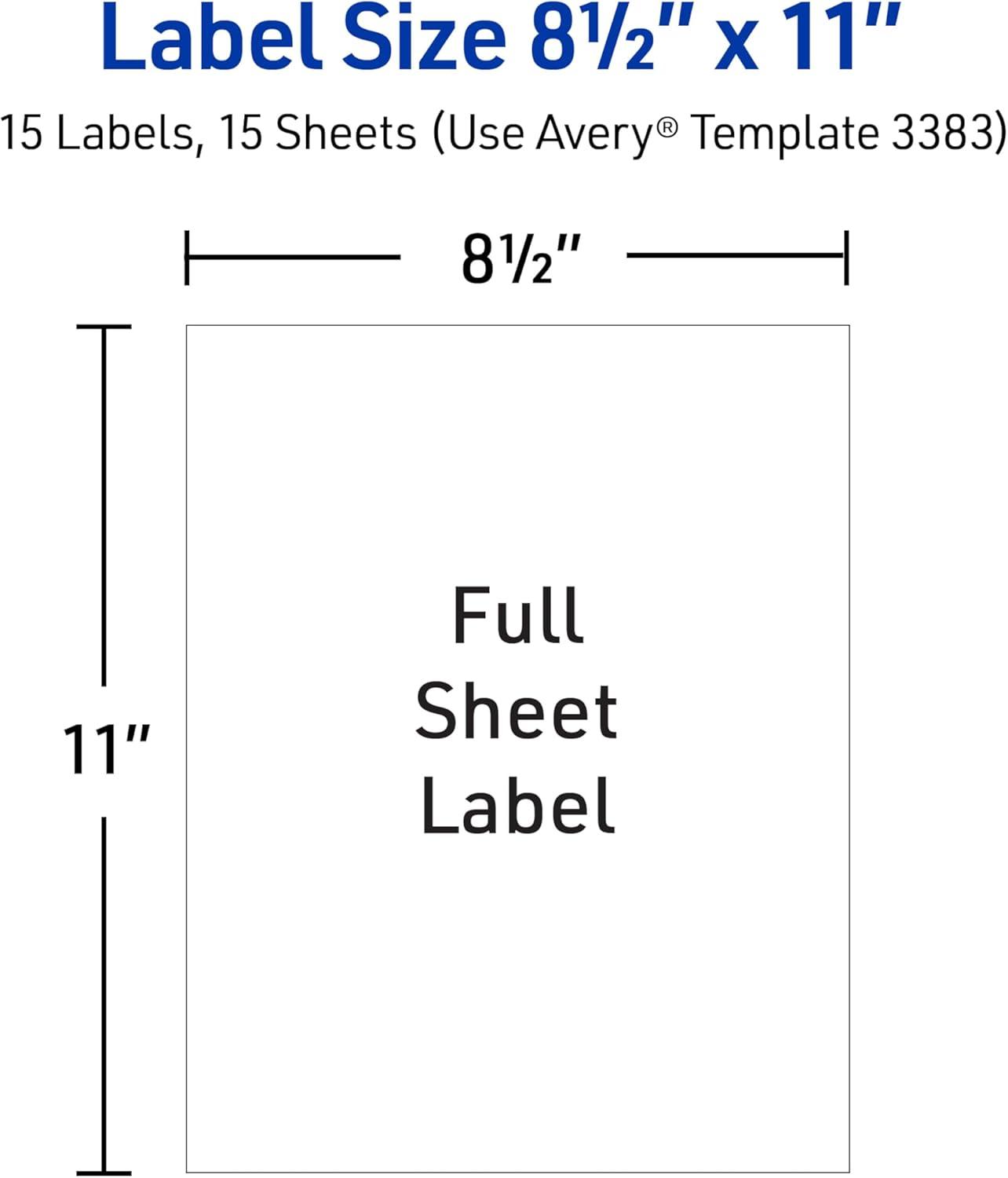 Avery Printable Sticker Paper, 8.5" x 11", Matte White, Repositionable Adhesive, Laser/Inkjet Compatible, 90 Full-Size Label Sheets, Great for Product Labels, Cute Stickers, and More (6-Pack of 3383)