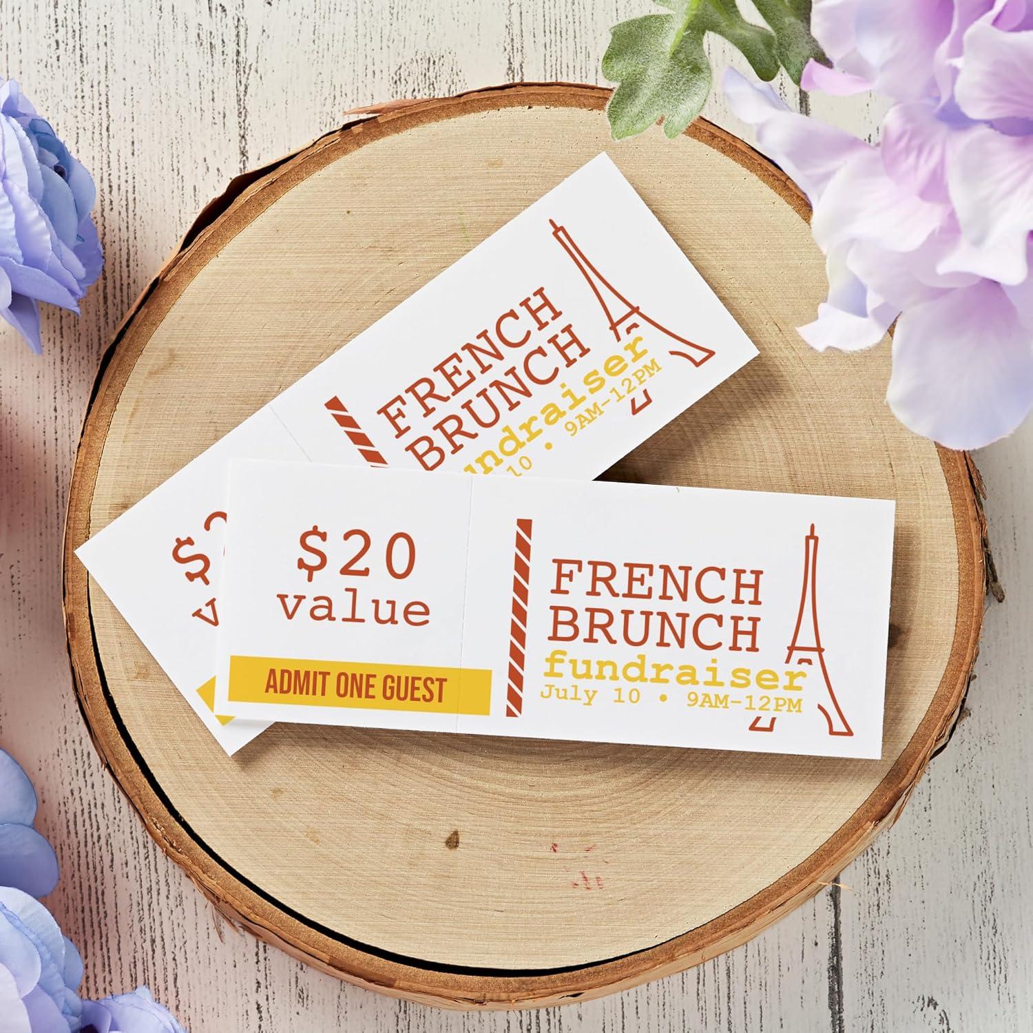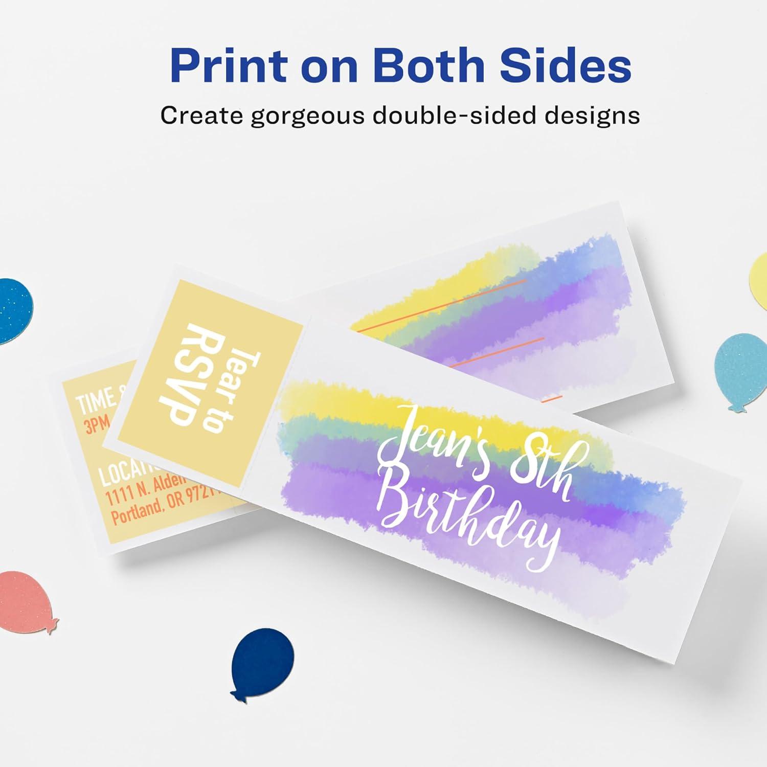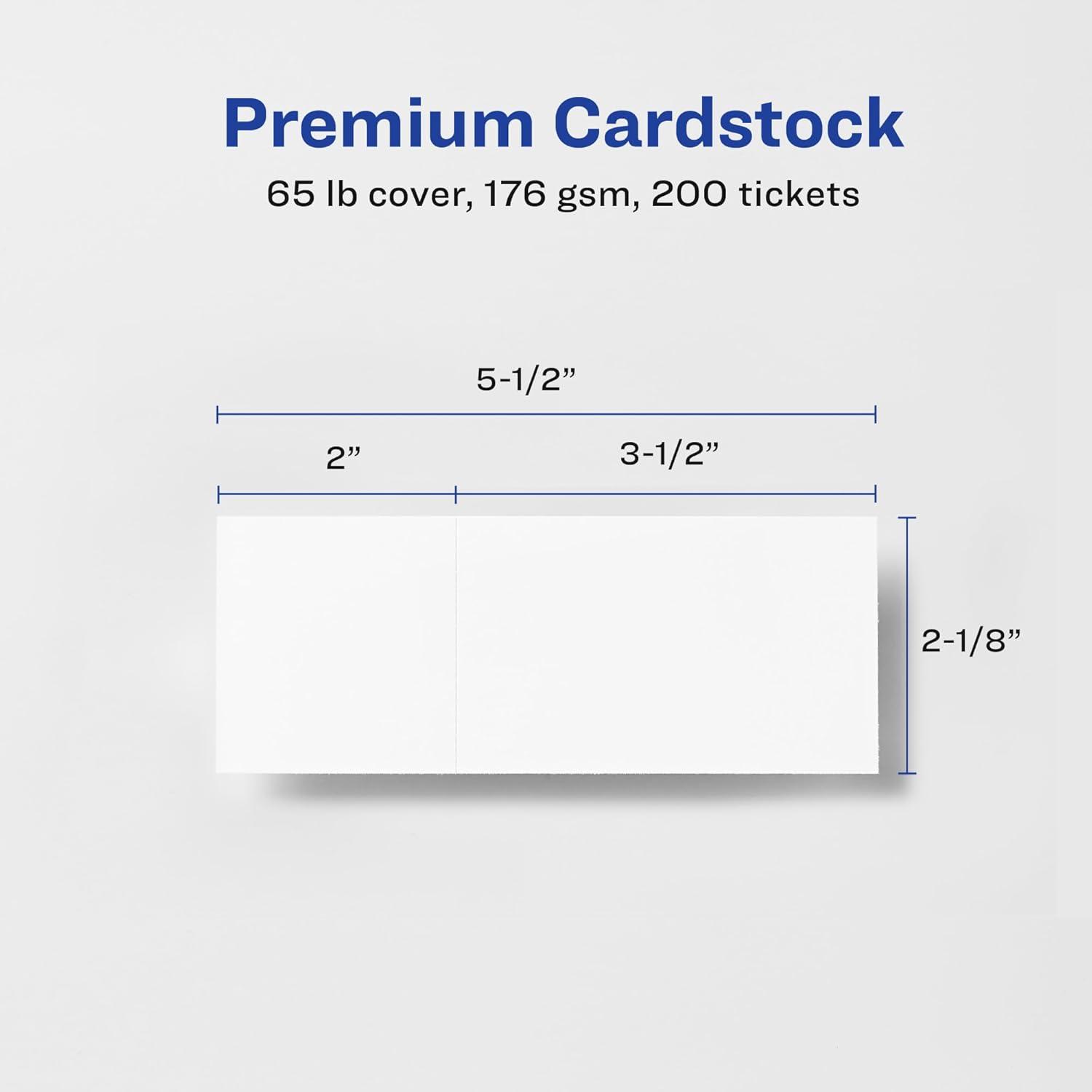 Make your next event extra special with Avery printable perforated tickets with stubs. With Avery tickets, you can easily print your own tickets from your home or office that look professionally printed. Ideal for printable raffle tickets, lottery tickets, drink tickets, concert tickets, diaper raffle tickets and more, these creative tickets are also great for crafting invitations, fundraising events, announcements, coupons and reminder cards. Each blank printable ticket and stub allows for your own new designs using Avery Design & Print Online. The intuitive Avery software also includes tools for creating sequential numbers, uploading images, personalizing text and much more. 100 tickets are included in total on 25 sheets with 4 tickets per sheet. The stub section measures 2-3/4″ x 2″ with the ticket section measuring 2-3/4″ x 6-1/2″. A strong perforation is used between each ticket and stub to leave a smooth edge for easy separation while ensuring the tickets are secure until the event.