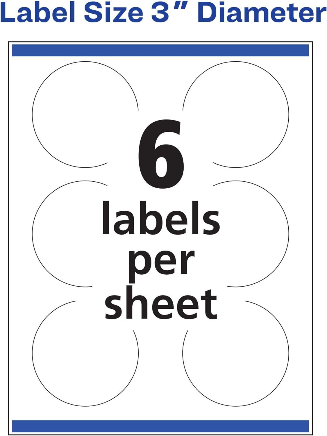 Avery Round Labels, Sure Feed Technology, 3" Diameter, 60 Glossy White Labels (36500)(600 labels)