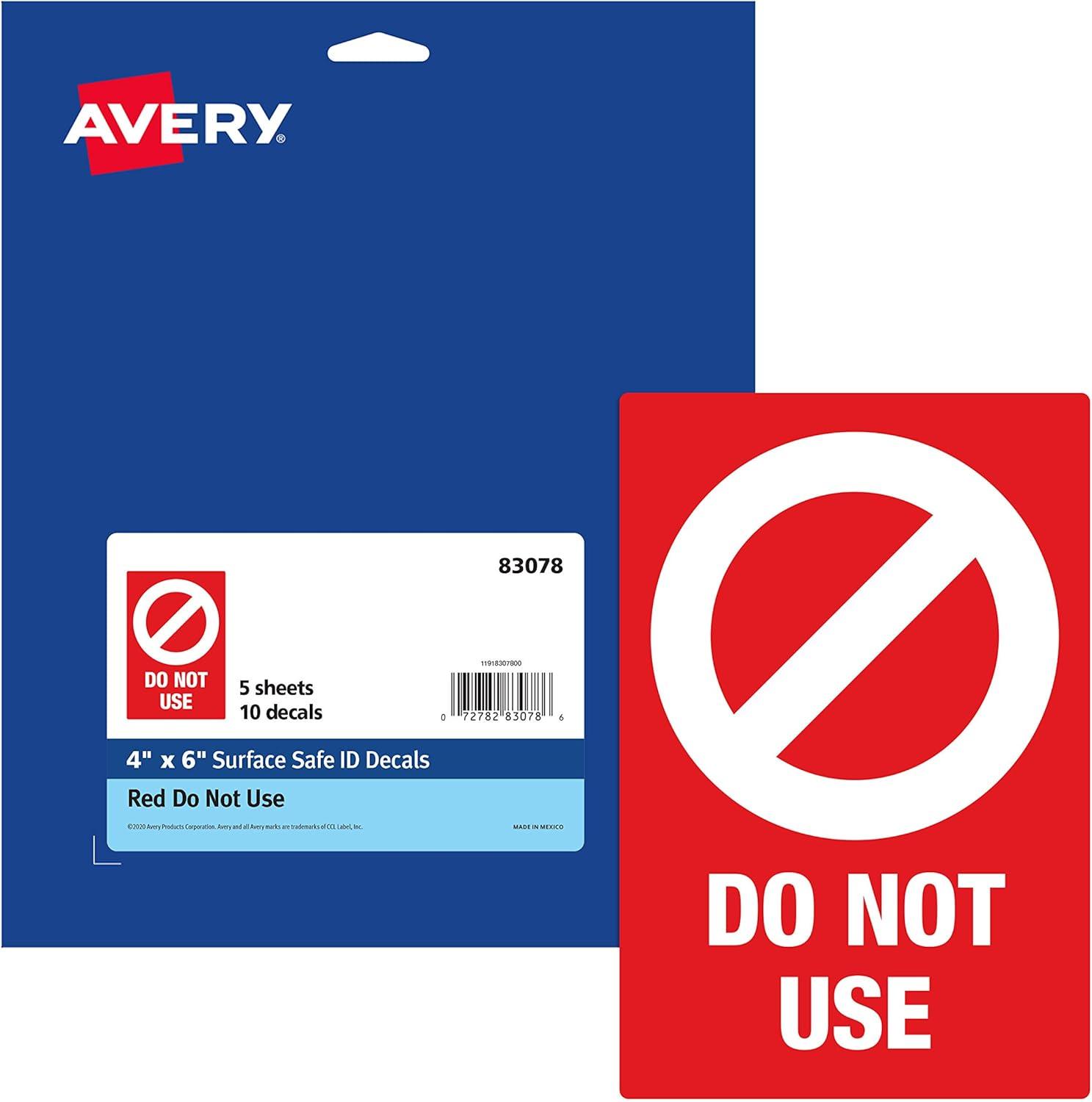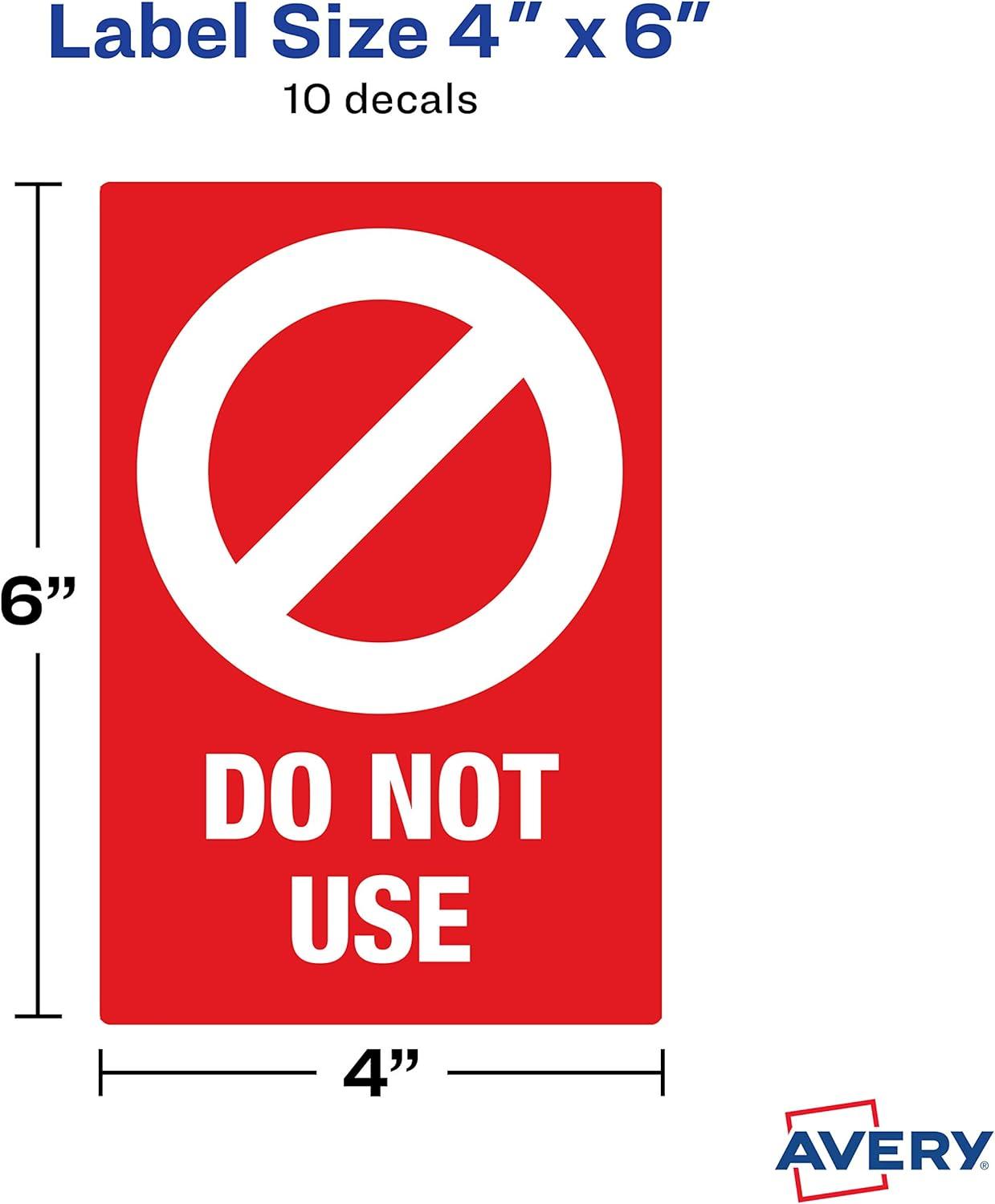 Avery Social Distancing Signs, Open/Closed, Green & Red, Surface Safe ID, 4" x 6", 10 Removable Decals (83070)(Red Do Not Use)
