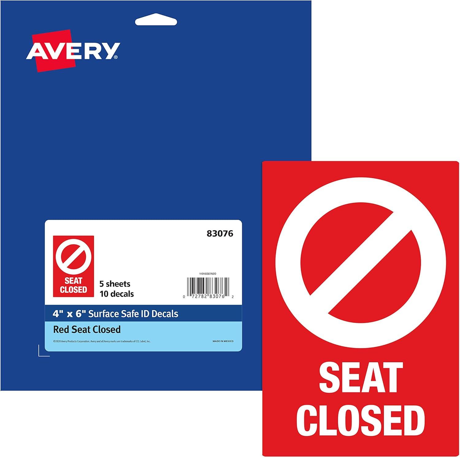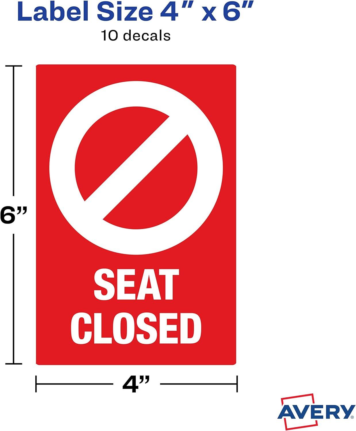 Avery Social Distancing Signs, Open/Closed, Green & Red, Surface Safe ID, 4″ x 6″, 10 Removable Decals (83070)(Red Seat Closed)