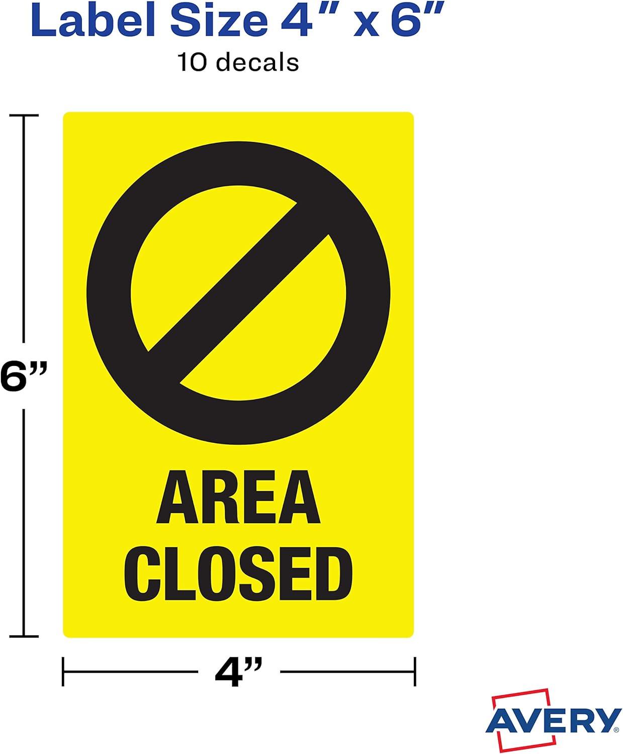 Avery Social Distancing Signs, Open/Closed, Green & Red, Surface Safe ID, 4″ x 6″, 10 Removable Decals (83070)(Yellow Area Closed)