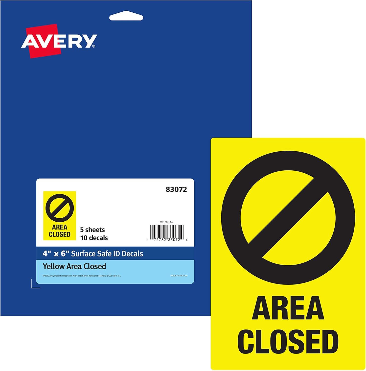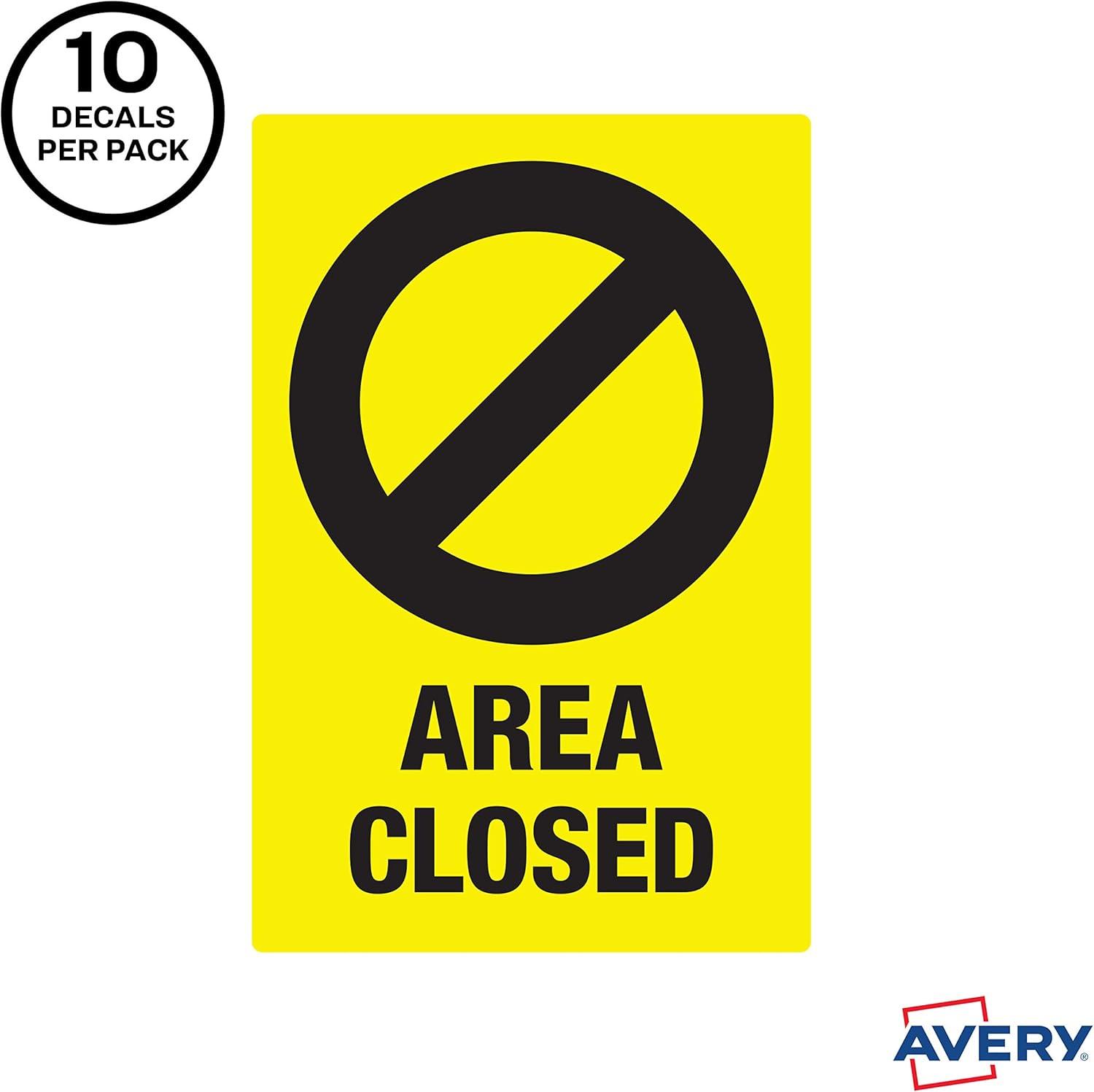 Avery Social Distancing Signs, Open/Closed, Green & Red, Surface Safe ID, 4" x 6", 10 Removable Decals (83070)(Yellow Area Closed)
