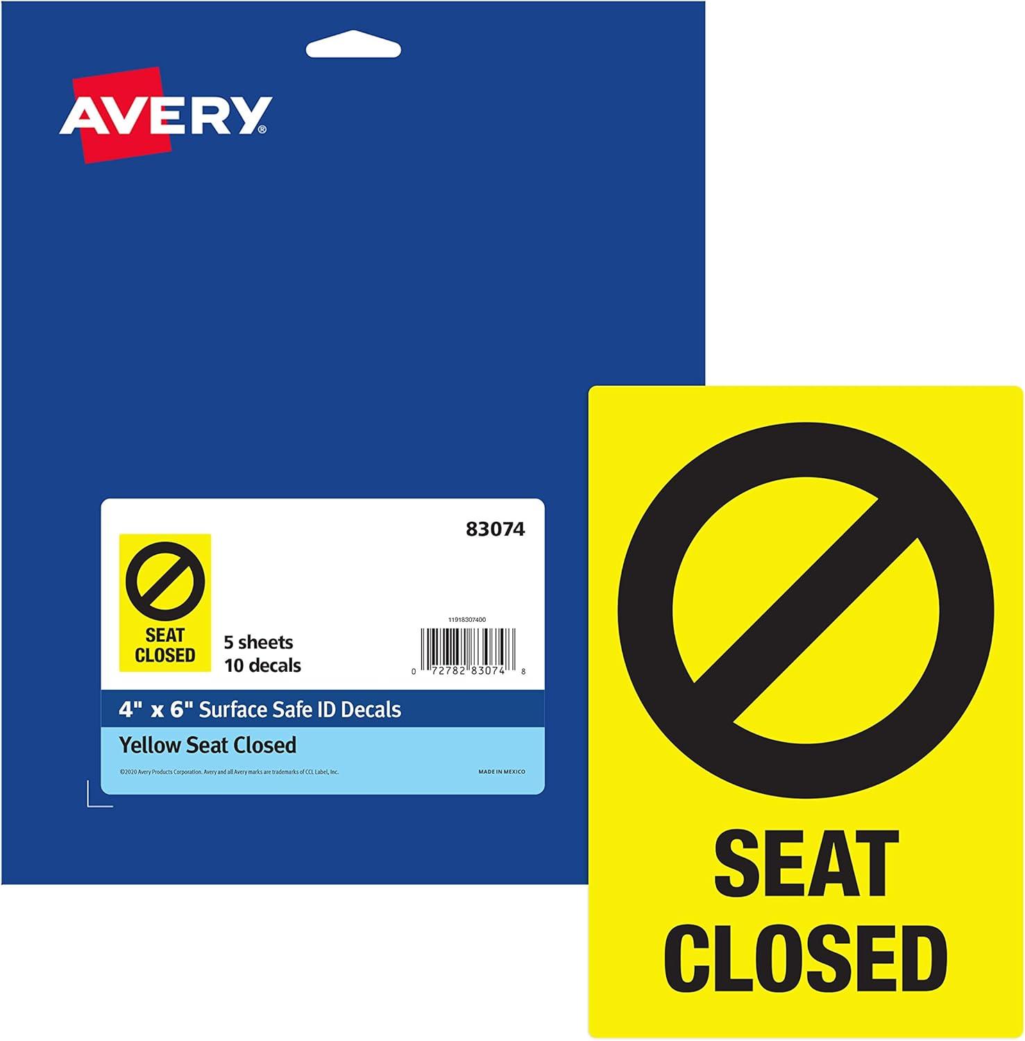 Avery Social Distancing Signs, Open/Closed, Green & Red, Surface Safe ID, 4″ x 6″, 10 Removable Decals (83070)(Yellow Seat Closed)