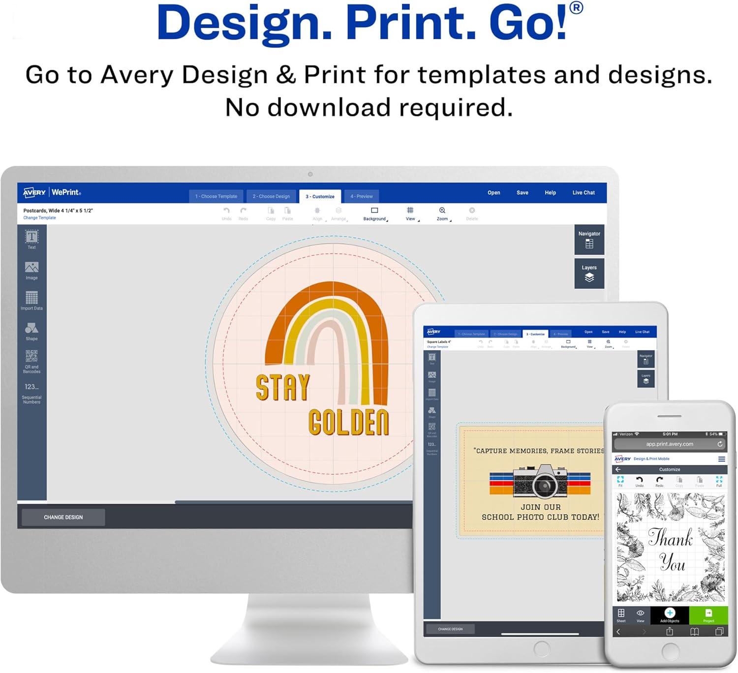 Avery labels with proprietary Sure Feed technology provide a more reliable feed through your printer, preventing misalignments and jams