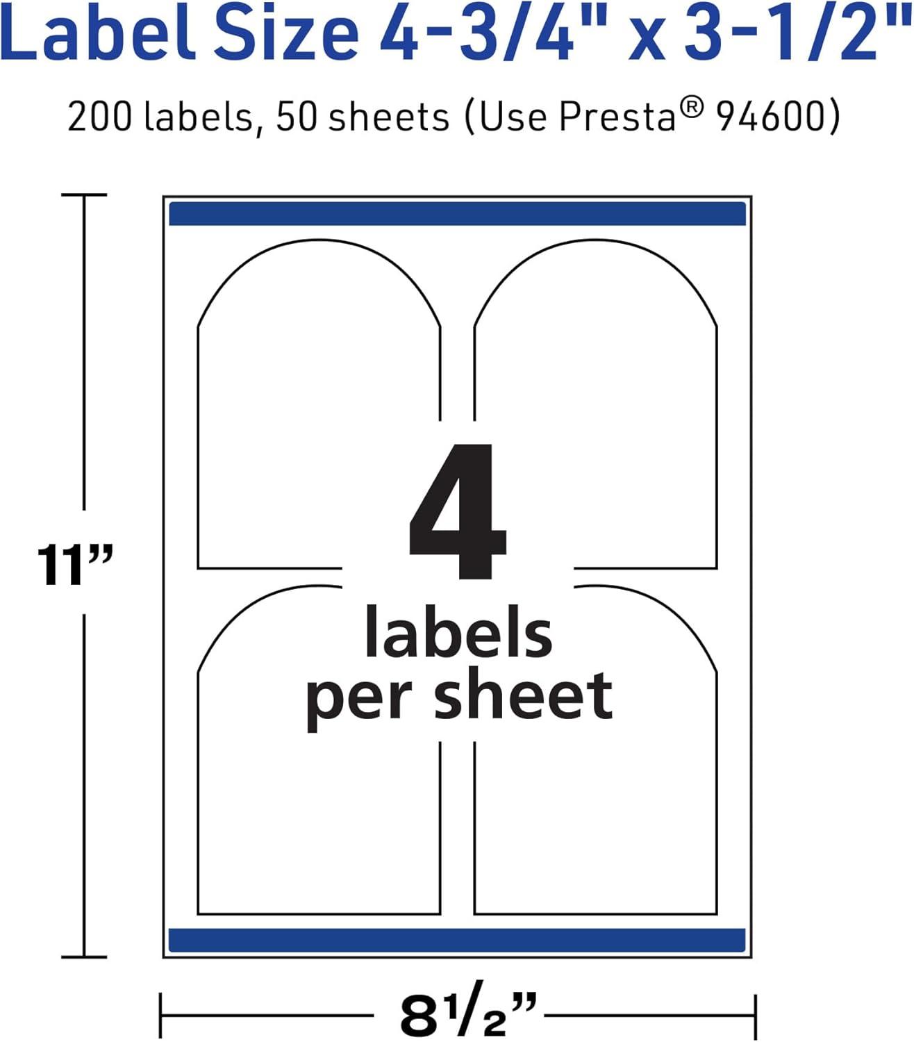Avery TrueBlock Matte White Arched Labels, Sure Feed Technology, 4.75" x 3.5", 200 Matte White Labels, Print-to-The-Edge, Laser/Inkjet Printable, Great for Packaging and Product Merchandising(200 labels)
