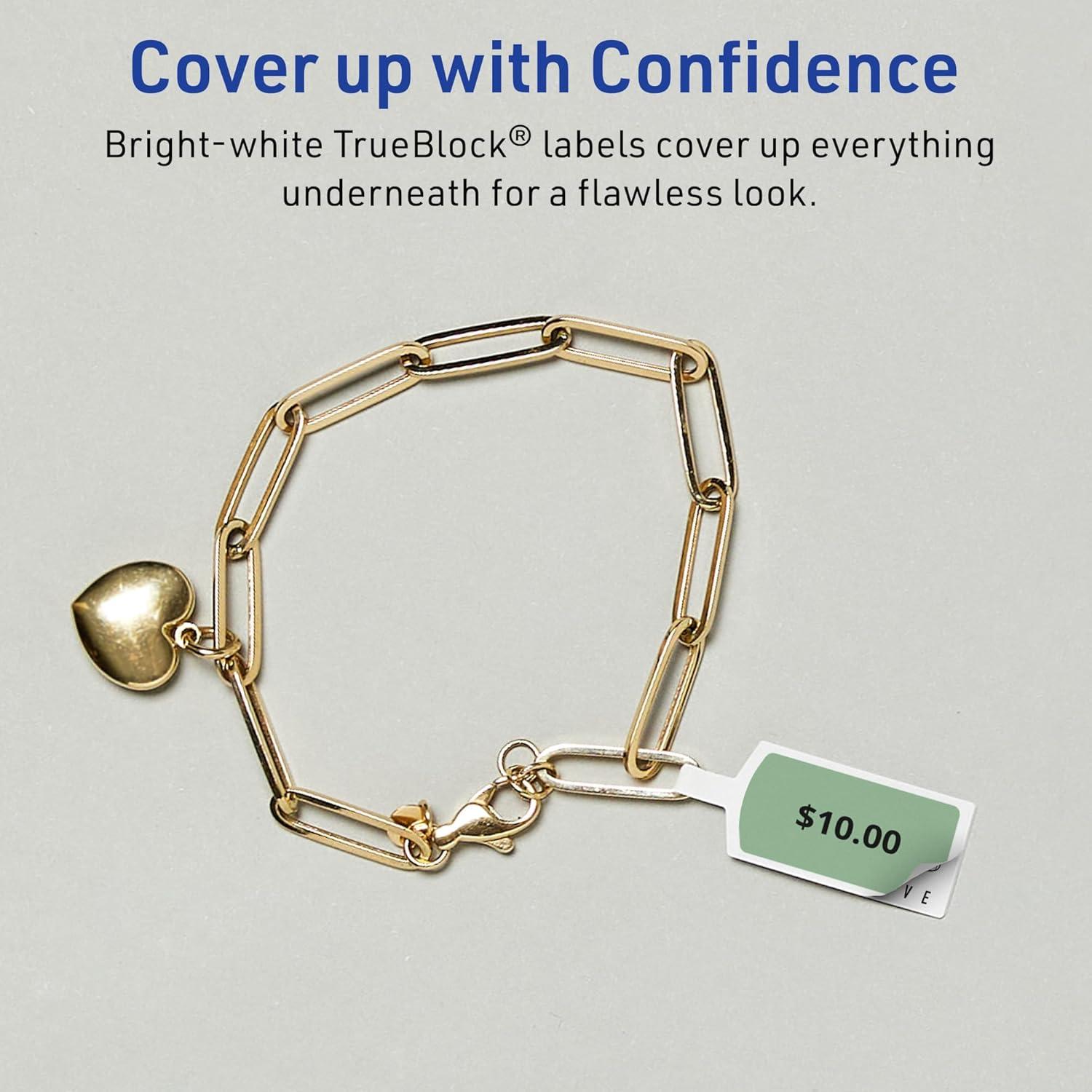 Easily update old information and create jewelry price labels, cable management labels, power cord labels, and more with Avery TrueBlock 1/2″ x 2-1/2″ Matte White Barbell Labels. Easily revise old labels with Avery TrueBlock technology. The proprietary TrueBlock feature completely covers up markings and printing so that none of your old data shows through. This also provides better contrast for your new print to stand out on a completely white background. The permanent adhesive makes sure that your labels stick and stay to a variety of surfaces without peeling, curling, or falling off. Avery barbell labels are carefully constructed with top features to provide the best results. Sure Feed technology reduces jams and smudges by creating a more reliable feed through your printer. Easily customize jewelry labels, tamper-evident labels, and more with your own art, symbols, and messaging by using the templates and designs on the Avery website.