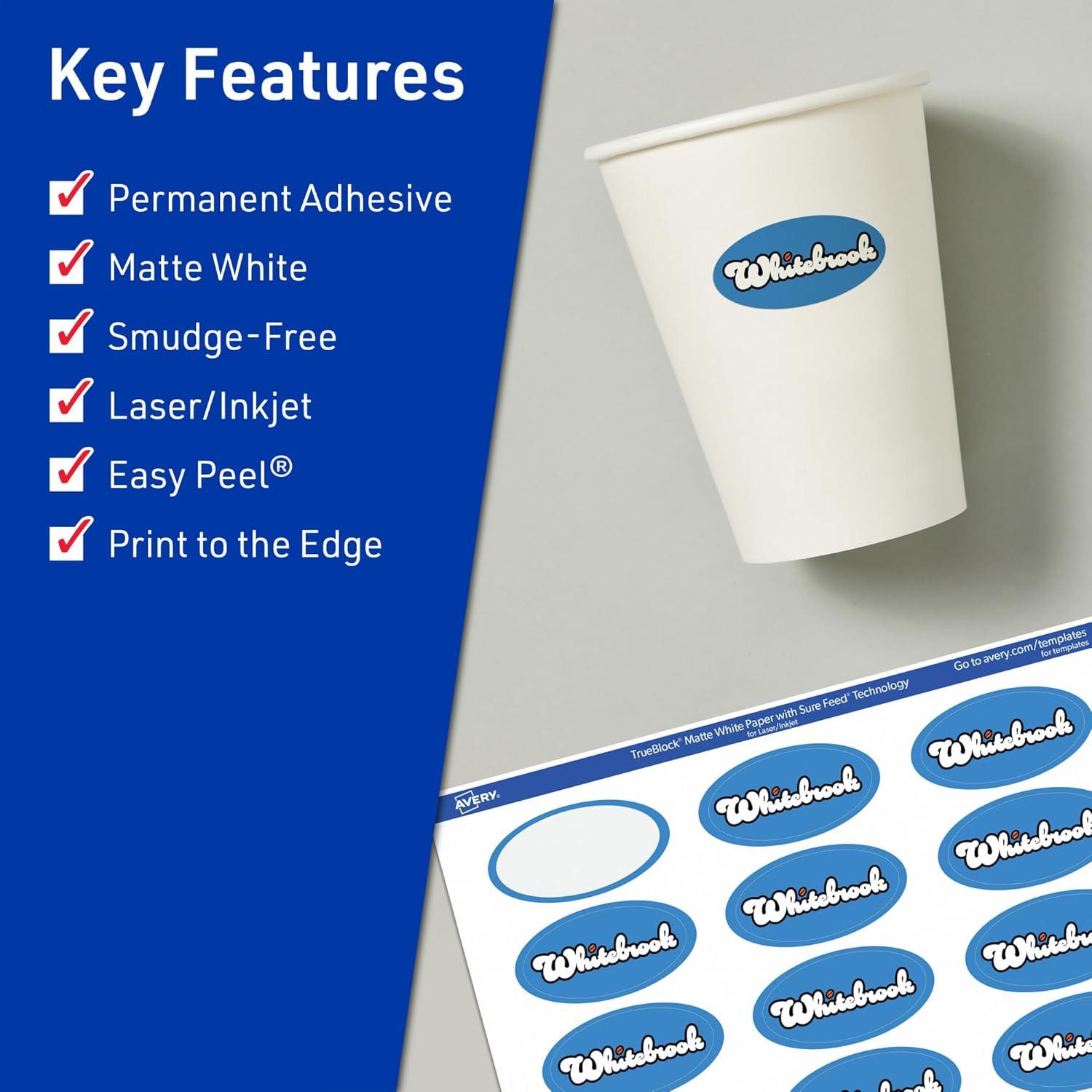 Avery TrueBlock Matte White Oval Labels, Sure Feed Technology, 1-1/8″ x 2-1/4″, 210 Matte White Labels, Print-to-The-Edge, Laser/Inkjet Printable, Great for Packaging and Product Merchandising(525 labels)