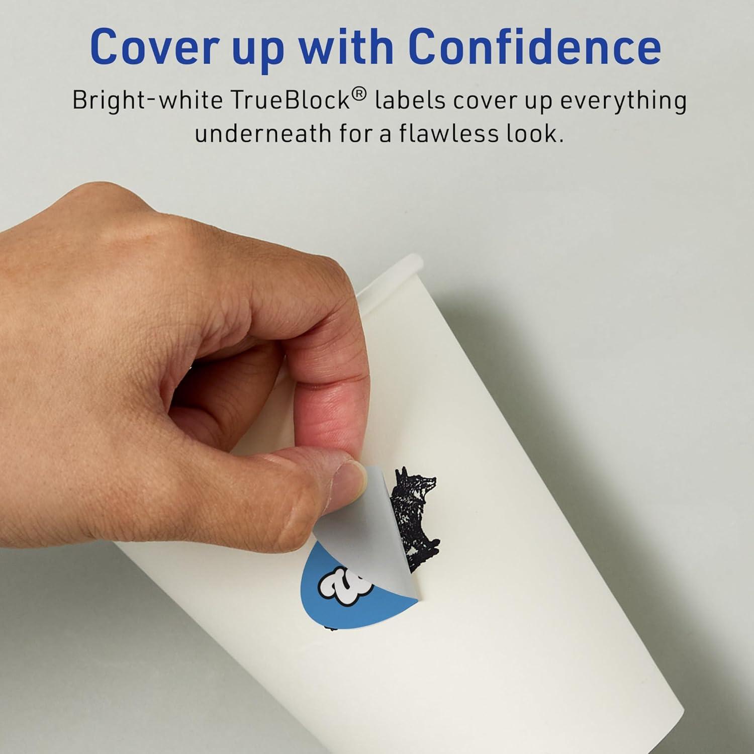Easily update old information by completely covering up existing labels and markings with Avery TrueBlock technology