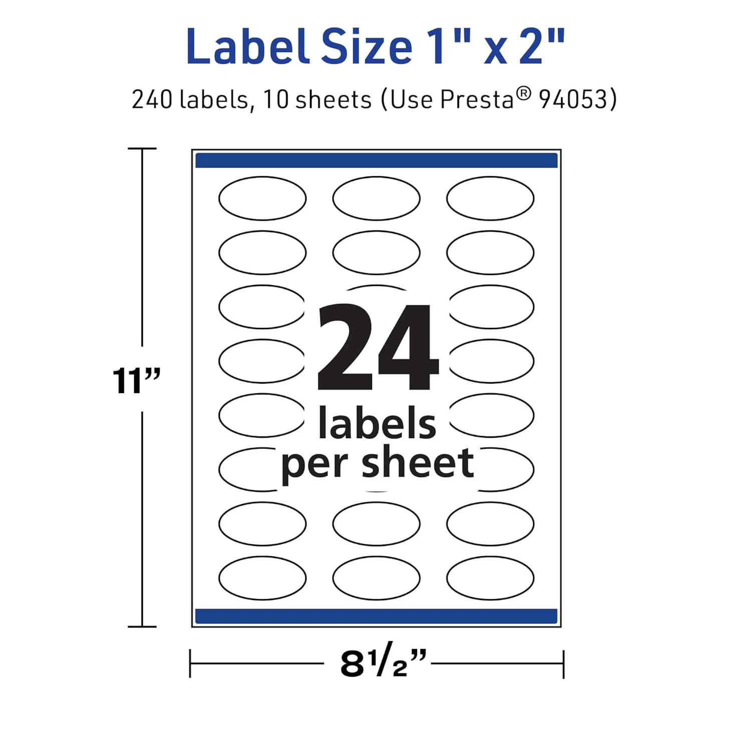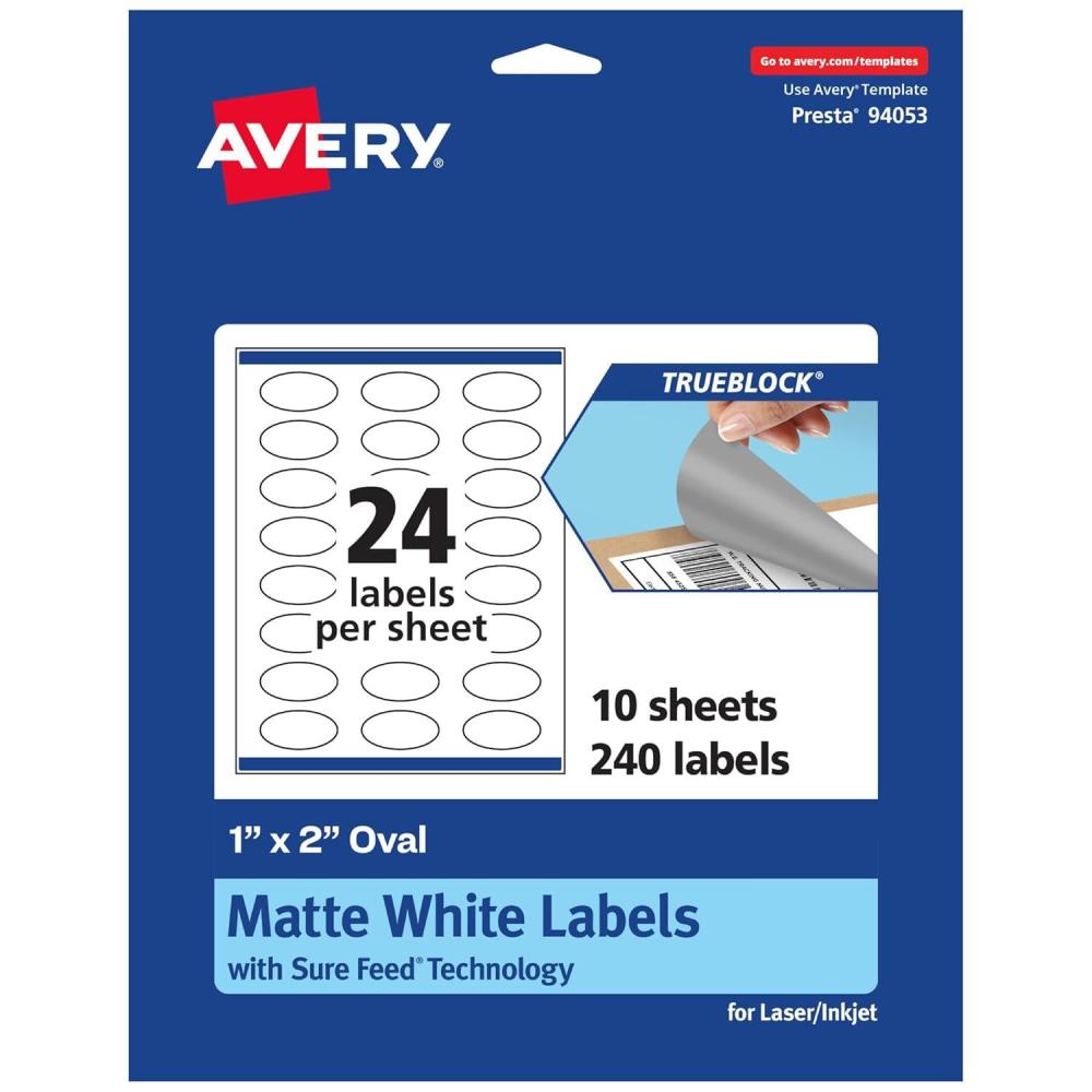 Easily update old information and create ingredient labels, soap labels, candle labels, and more with Avery TrueBlock 1″ x 2″ Matte White Oval Labels. Easily revise old labels with Avery TrueBlock technology. The proprietary TrueBlock feature completely covers up markings and printing so that none of your old data shows through. This also provides better contrast for your new print to stand out on a completely white background. The permanent adhesive makes sure that your labels stick and stay to a variety of surfaces without peeling, curling, or falling off. Avery oval labels are carefully constructed with top features to provide the best results. Sure Feed technology reduces jams and smudges by creating a more reliable feed through your printer. The print-to-the-edge layout lets you print beautiful full-bleed designs that fill each blank sticker to the edge. The patented Easy Peel label design makes these labels easy to peel and quick to apply. Just bend the label sheet, peel off your labels and fold the sheet back flat. Easily customize product labels, canning labels, packaging labels, and more with your own art, symbols, and messaging by using the templates and designs on the Avery website.