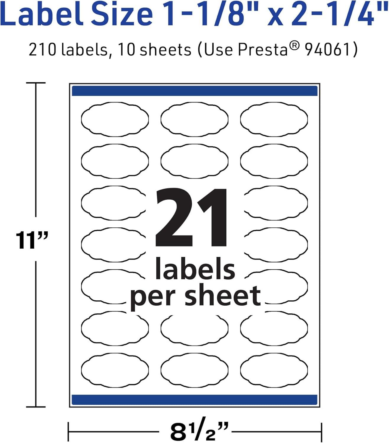 Avery TrueBlock Matte White Oval Scalloped Labels with Sure Feed, 1-1/8″ x 2-1/4″, 210 Matte White Labels, Print-to-The-Edge, Laser/Inkjet Printable Labels, Great for Packaging and Product Labels(210 labels)