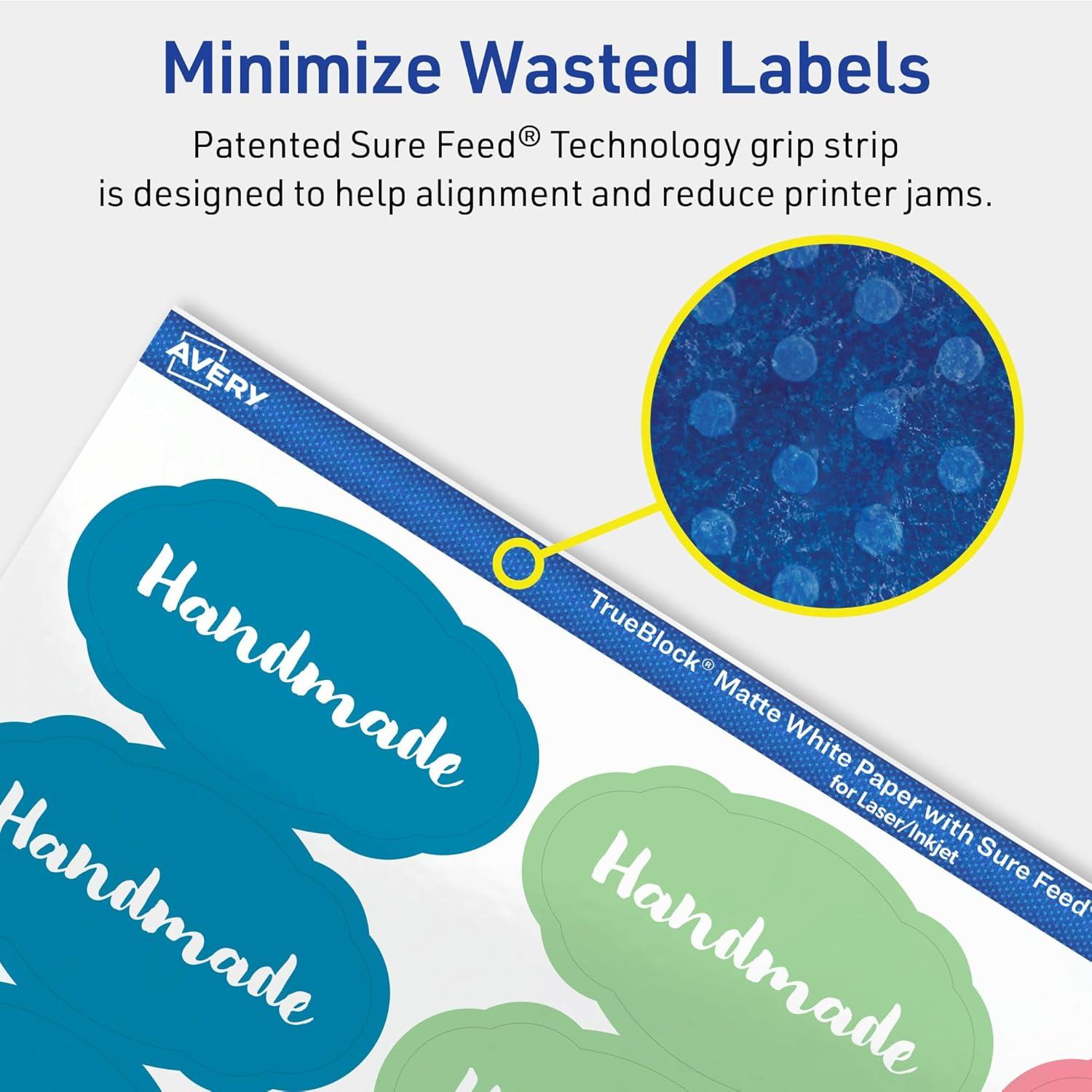 Avery TrueBlock Matte White Oval Scalloped Labels with Sure Feed, 1-1/8″ x 2-1/4″, 210 Matte White Labels, Print-to-The-Edge, Laser/Inkjet Printable Labels, Great for Packaging and Product Labels(525 labels)