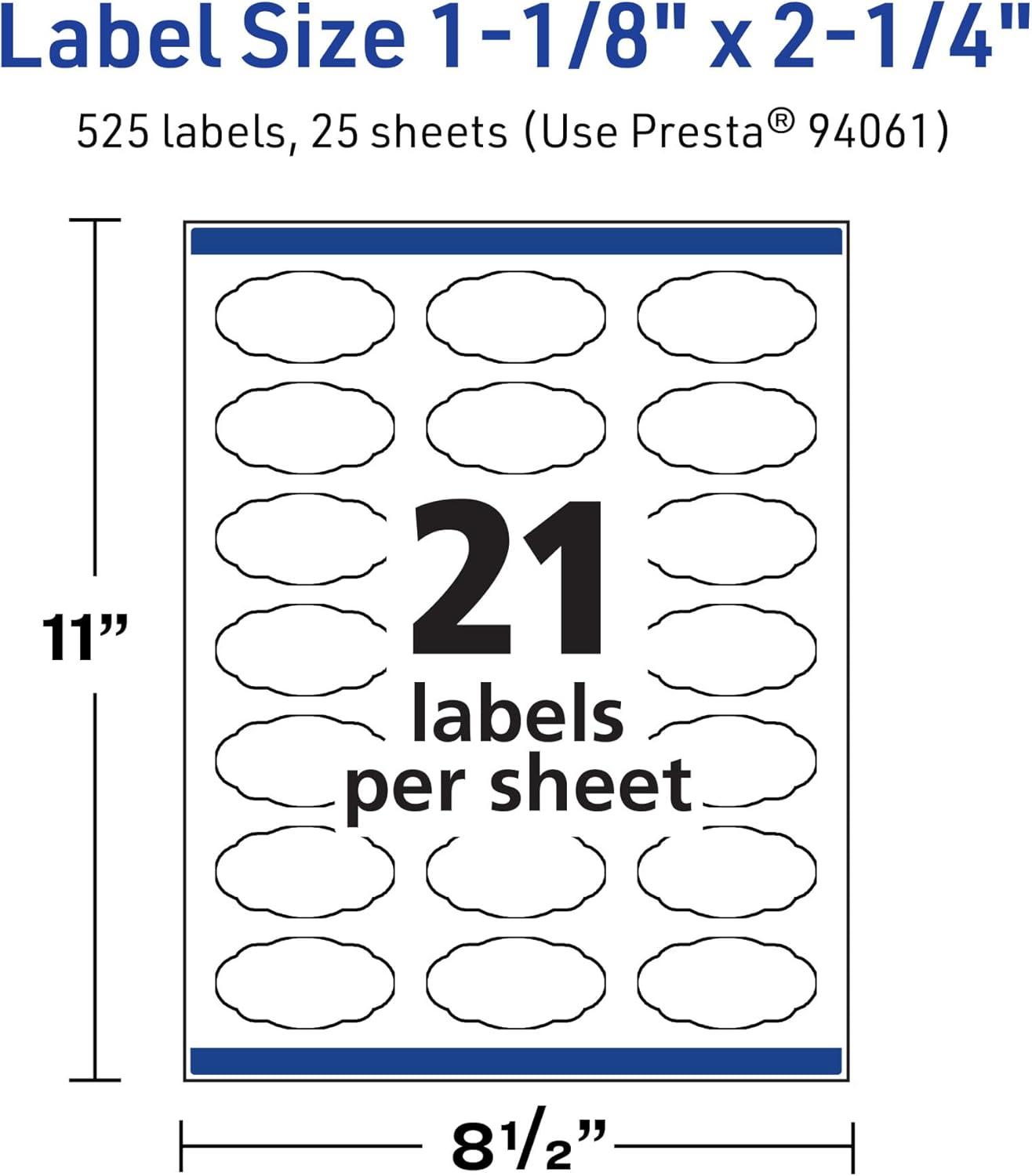 Avery Matte White Oval Scalloped Labels, Sure Feed Technology, 1-1/8″ x 2-1/4″, 525 Matte White Printable Labels(1 050 Labels)