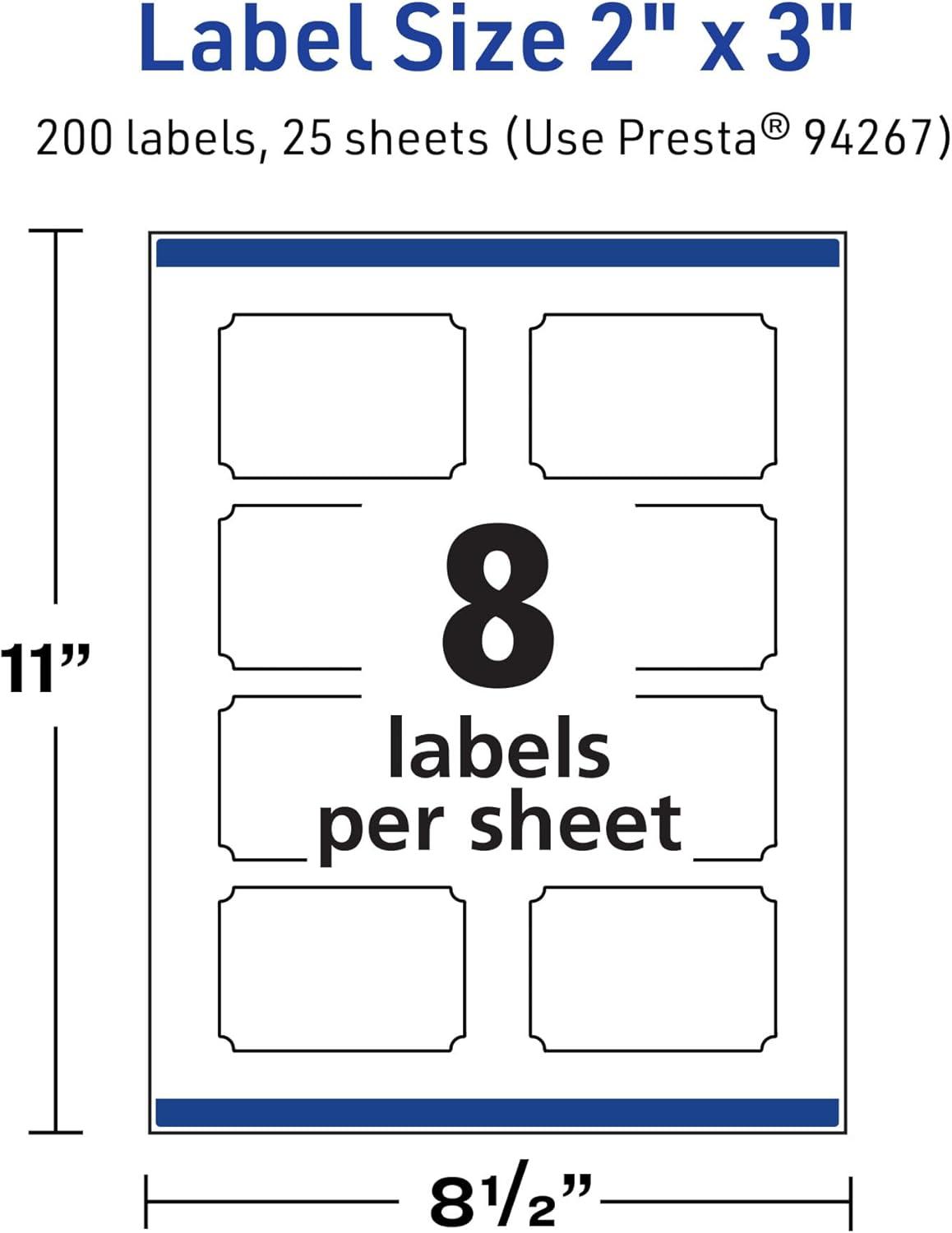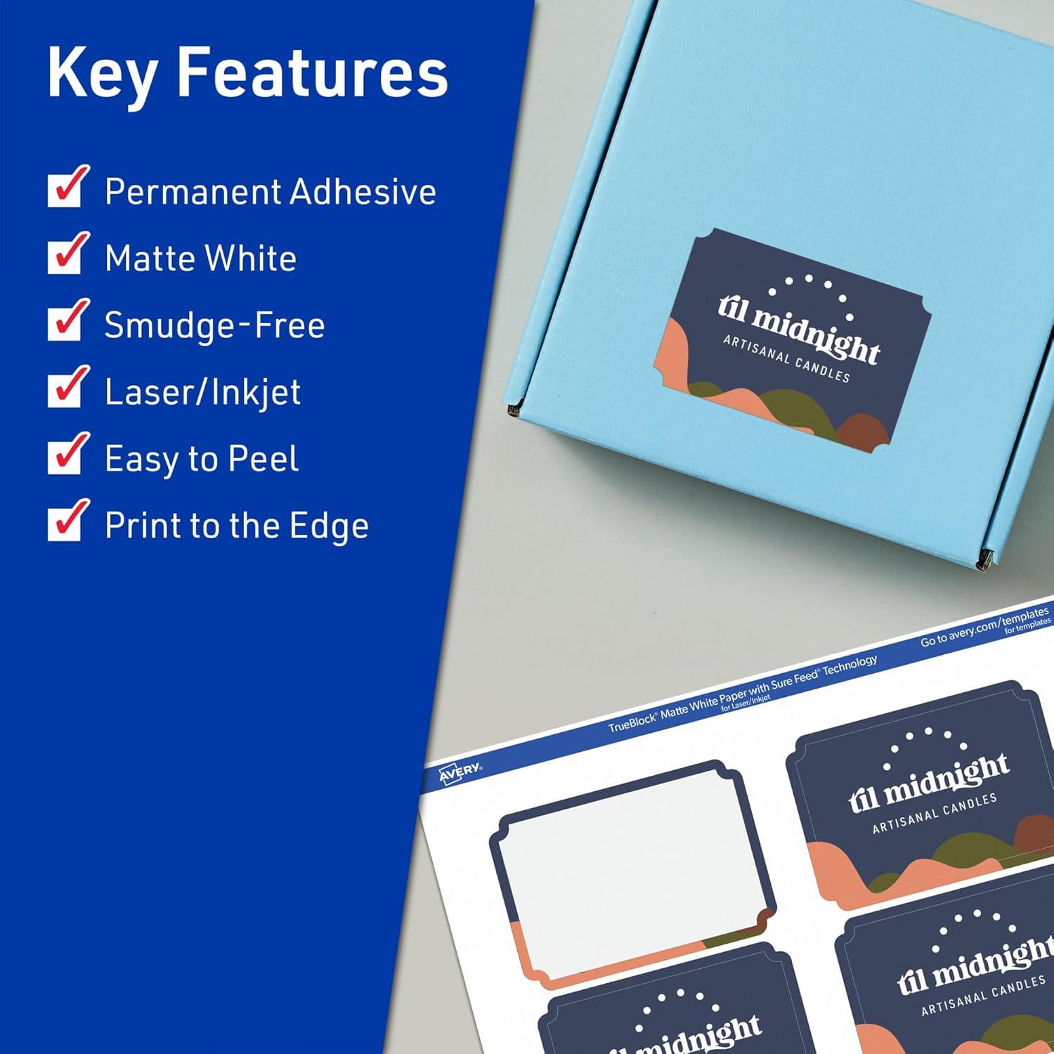 Avery TrueBlock Matte White Rectangle Scalloped Labels, Sure Feed Technology, 2″ x 3″, 80 Matte White Labels, Print-to-The-Edge, Laser/Inkjet Printable, Great for Packaging and Product Merchandising(200 labels)