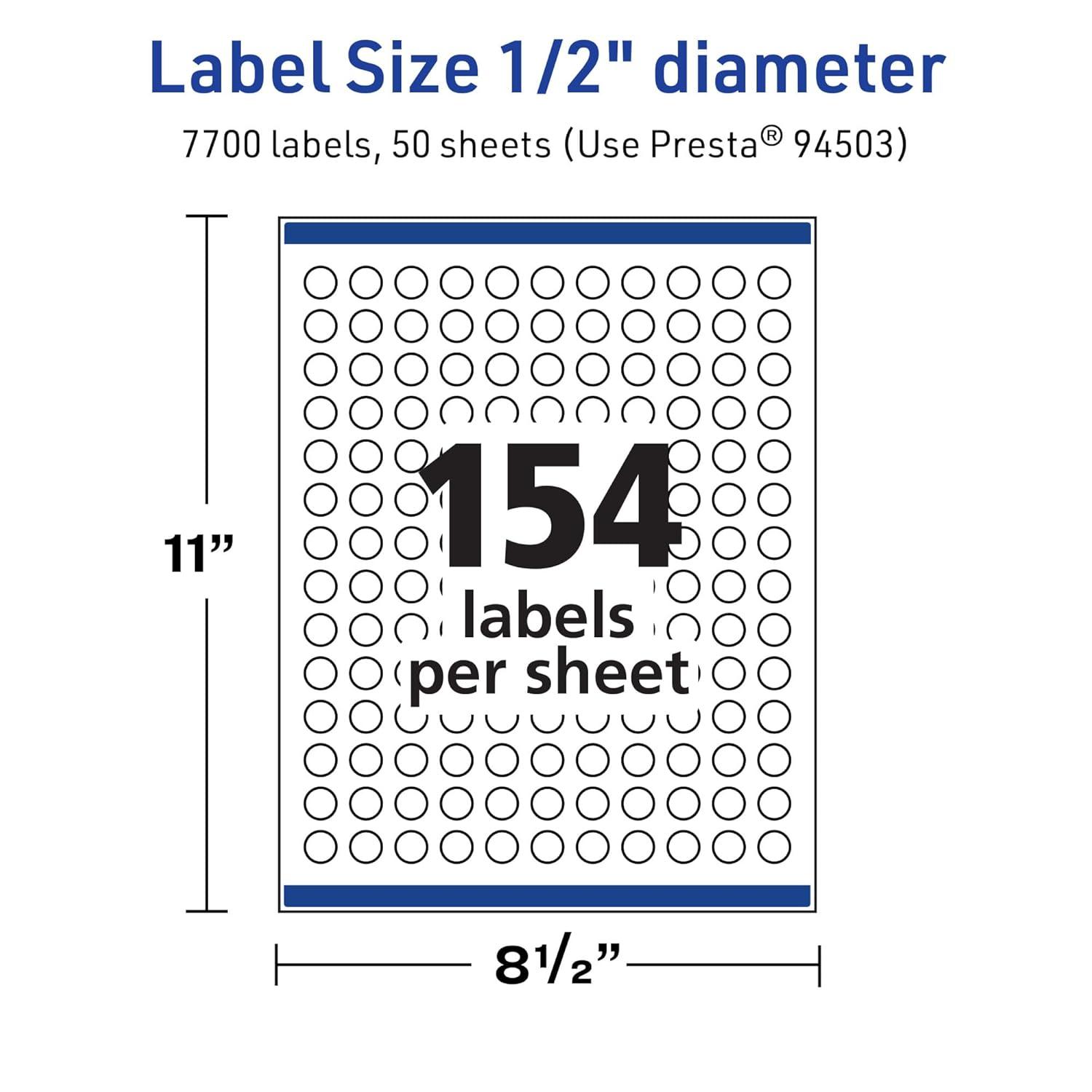 Avery TrueBlock Matte White Round Labels, Sure Feed Technology, 0.5″ Diameter, 1,540 Matte White Labels, Print-to-The-Edge, Laser/Inkjet Printable, Great for Product Merchandising Stickers(7 700 labels)